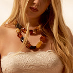 Strung together to highlight the raw elegance of the amber, the necklace creates a bold yet effortlessly wearable statement. It radiates a soft, sun-kissed warmth that complements any outfit, from relaxed everyday wear to elegant evening looks.
