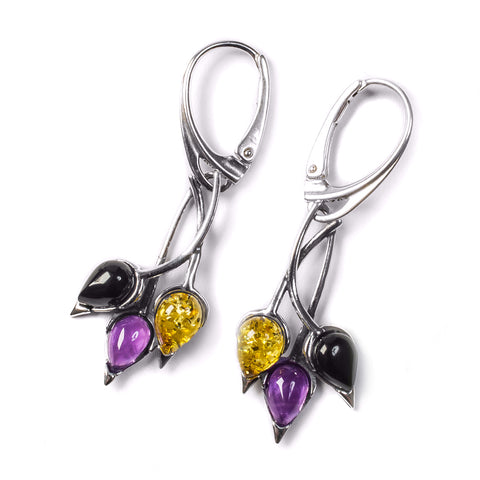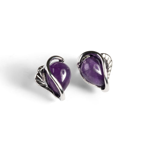 Classic Teardrop Stud Earrings in Silver 24ct Gold and Amethyst