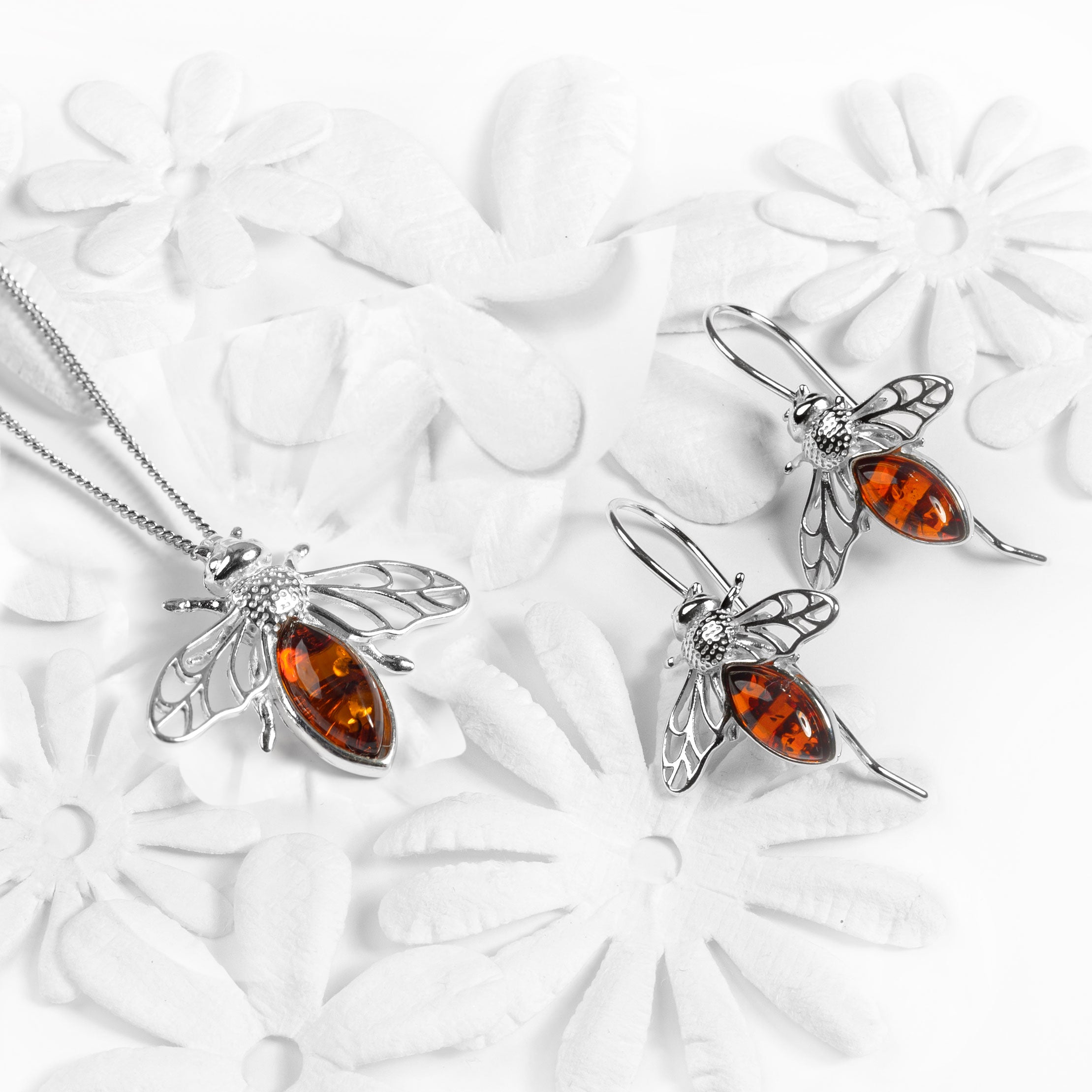 Our gorgeous Silver Honey Bee Hook Earrings are particularly unusual as the silver work on the reverse of the earring create a striped effect with amber. Replicating the famous body of the Bee!