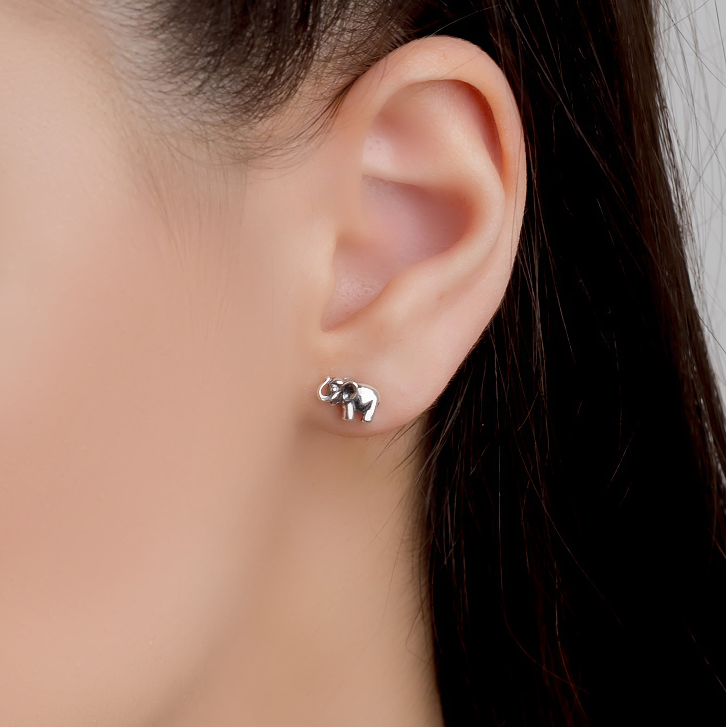 Sweet and meaningful Silver Miniature Elephant Stud Earrings.