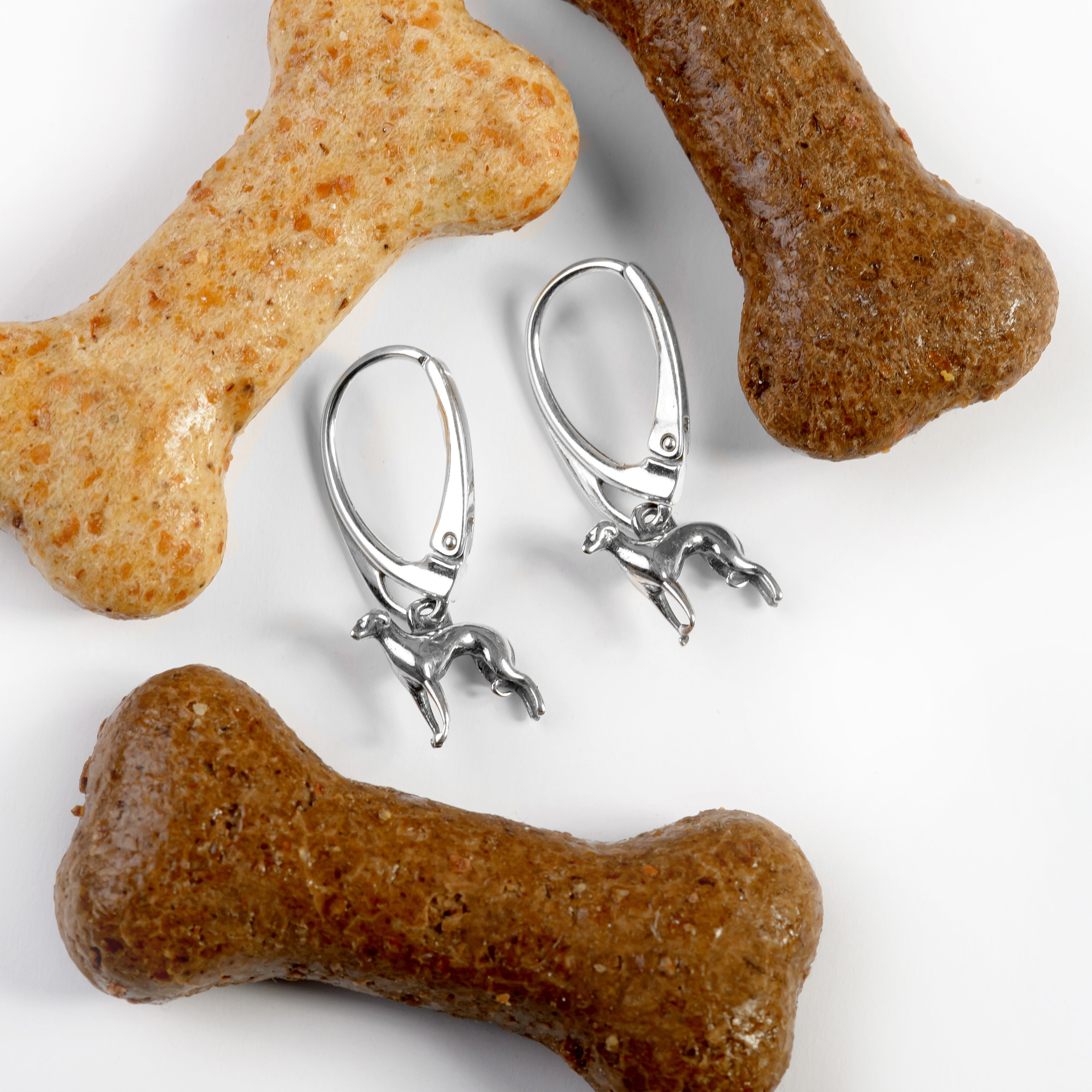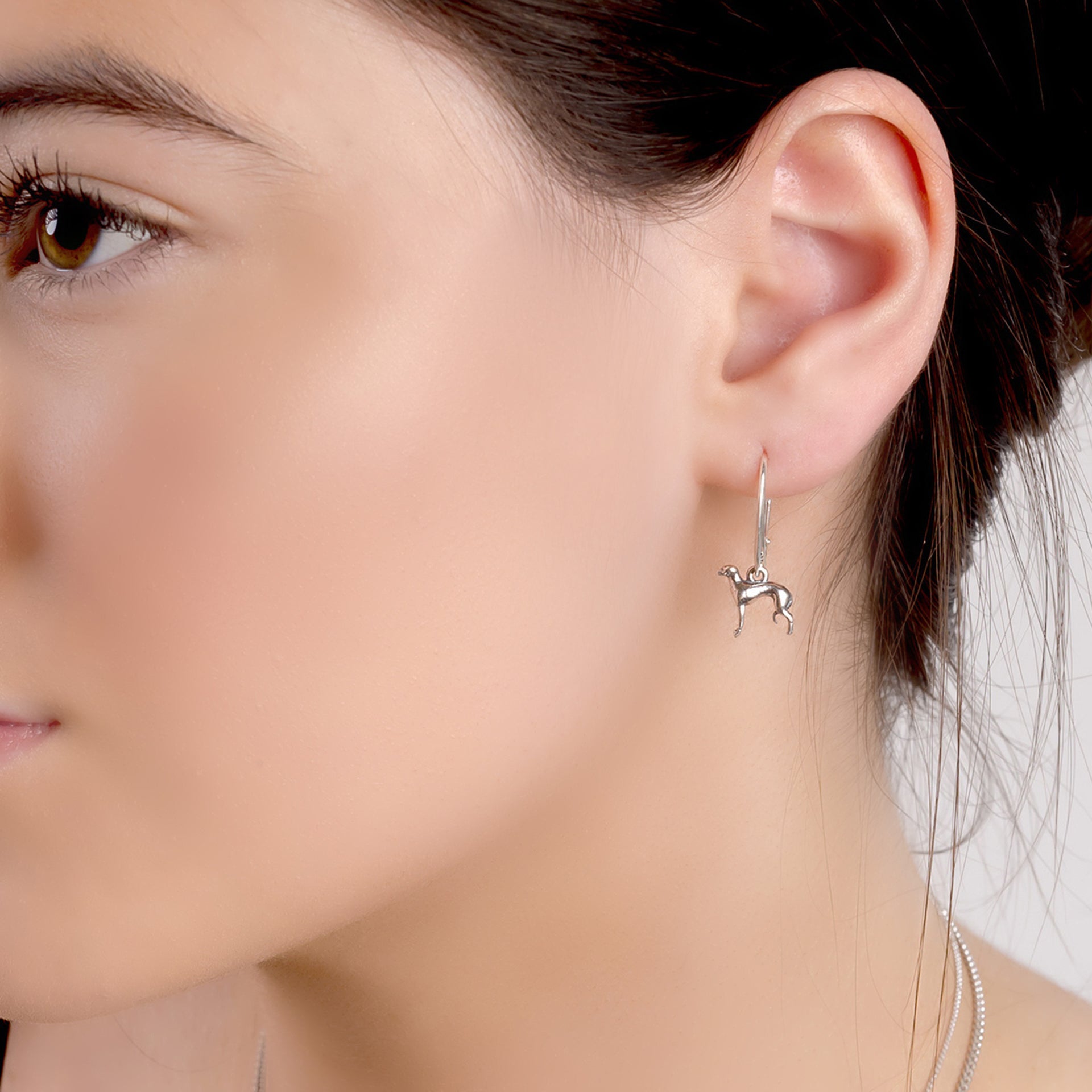 Miniature Greyhound / Whippet / Sighthound Hook Earrings in Silver