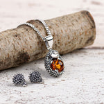Beautifully crafted in 925 silver with a genuine Baltic Amber gemstone which is held by carefully designed paws. Finished with the Hedgehog's famous 'prickly' back-but don't worry, it's not spiky!