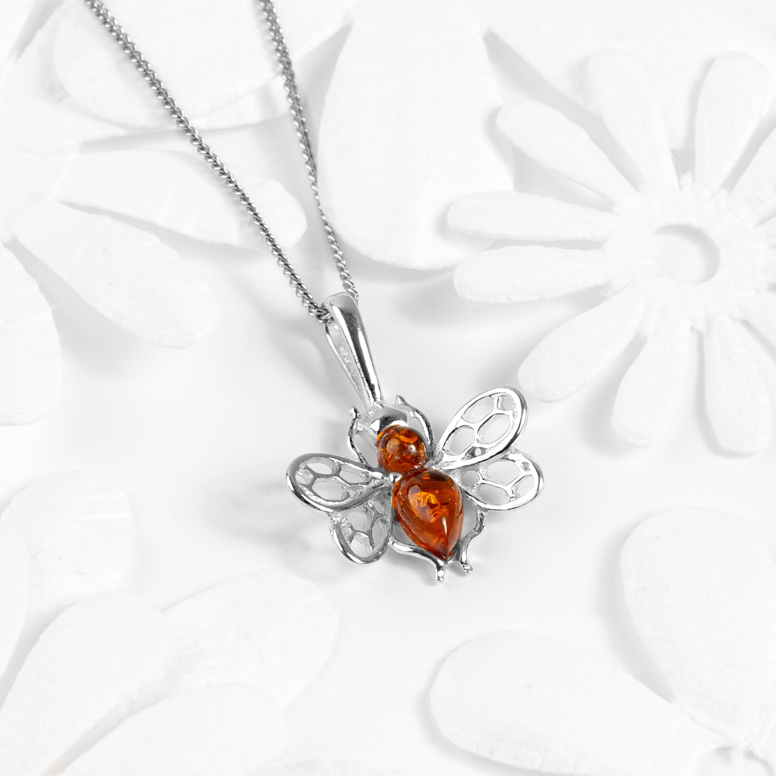 Handcrafted in 925 silver and adorned with a genuine Baltic Amber gemstone body and finished with highly detailed silver wings, this friend of the garden is full of character and charm. Complete with a solid silver chain, it is perfect for every day wearing.