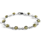 Circle Link Bracelet in Silver and Green Amber