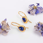 Crafted in solid 925 silver with 24ct Gold plating, each earring has a single teardrop shaped natural Lapis Lazuli gemstone. With a solid open hook and delicate design, these earrings are ideal for all day wearing.