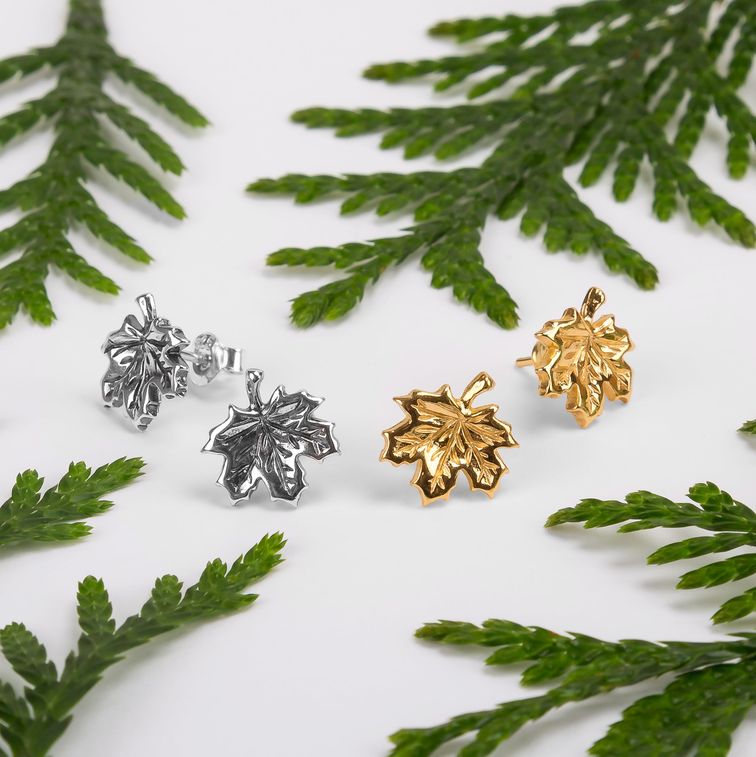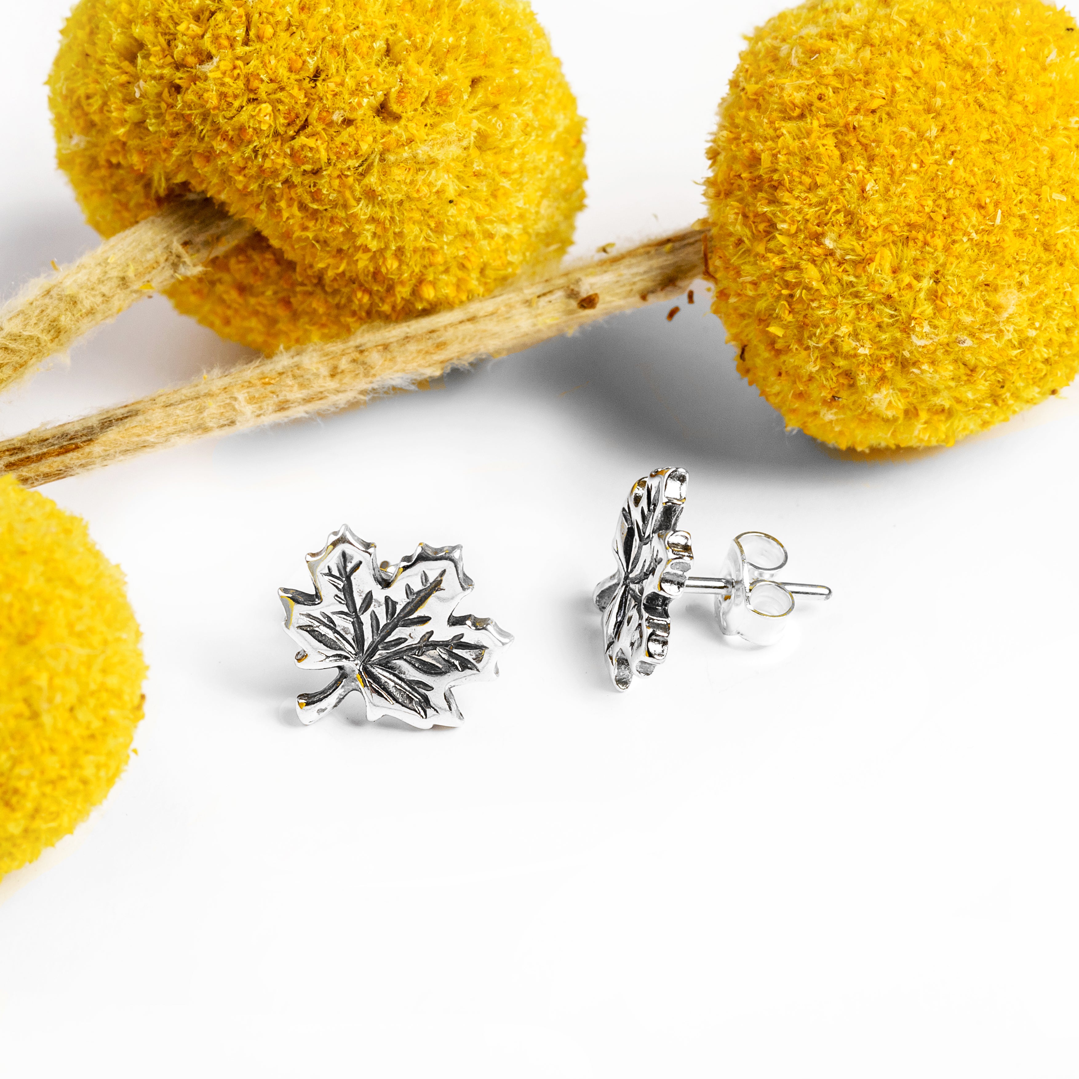Fall into autumn with our Silver Maple Leaf Stud Earrings.