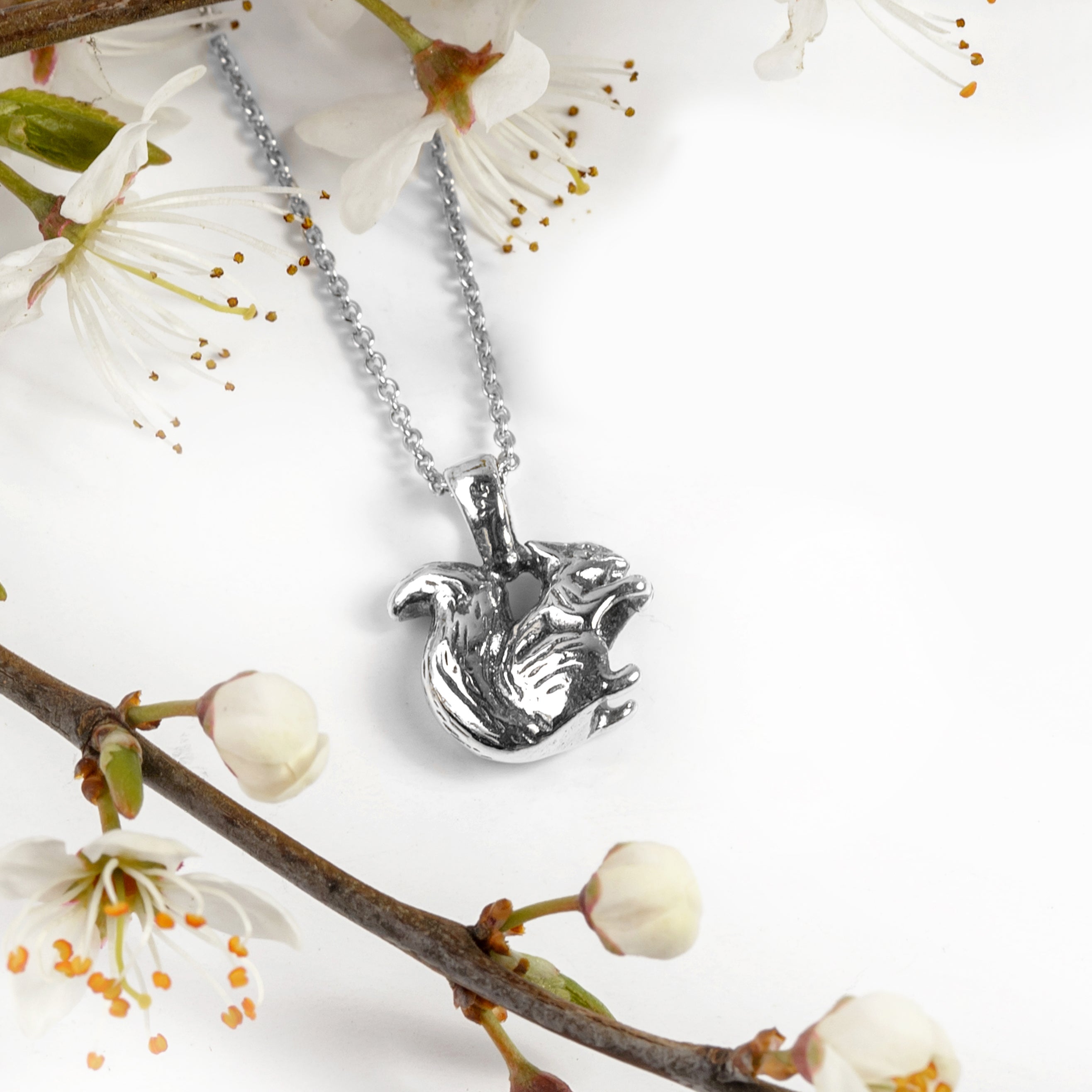 Lovingly crafted in 925 silver, the pendant is 3 dimensional and boasts all the characteristics of this cute woodland creature. With his bushy tail and pointed ears, he is positioned in such way a it appears to be munching on his favourite snack-acorns! Complete with a silver chain, it will add a rustic feel to any occasion.