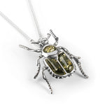 Noble Chafer Beetle Necklace in Silver and Green Amber