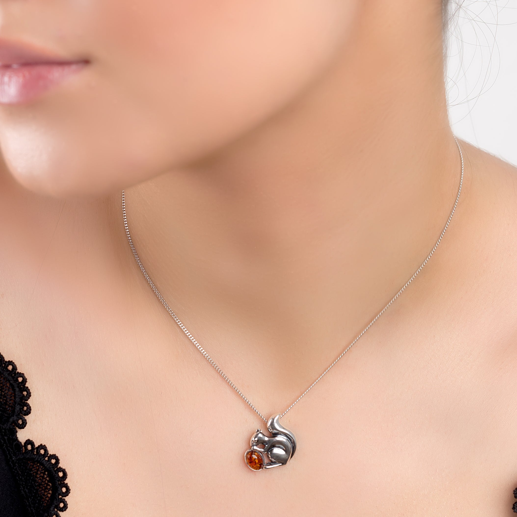 Squirrel Necklace in Silver and Cognac Amber