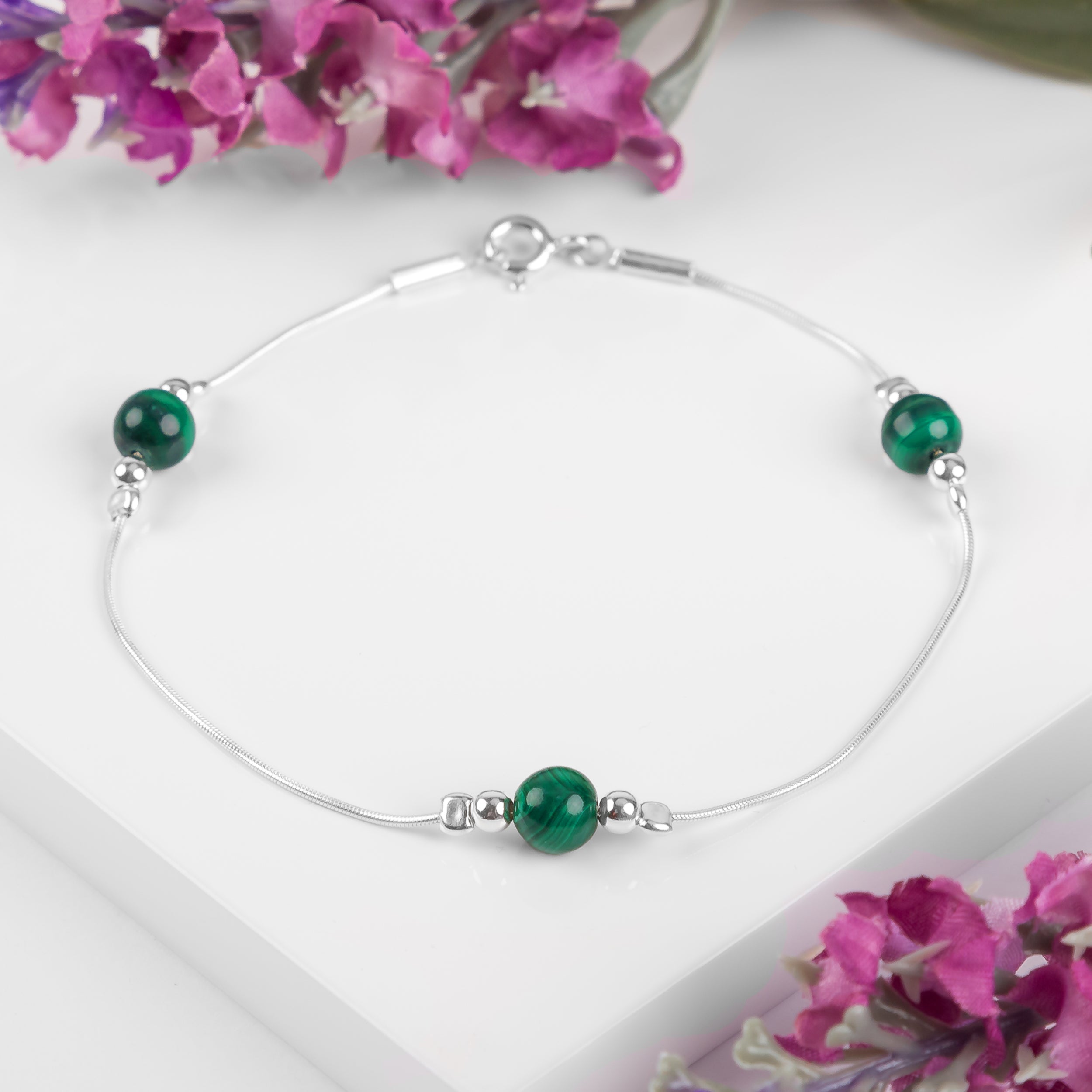 Effortlessly stylish Silver and Malachite Bead Bracelet.
