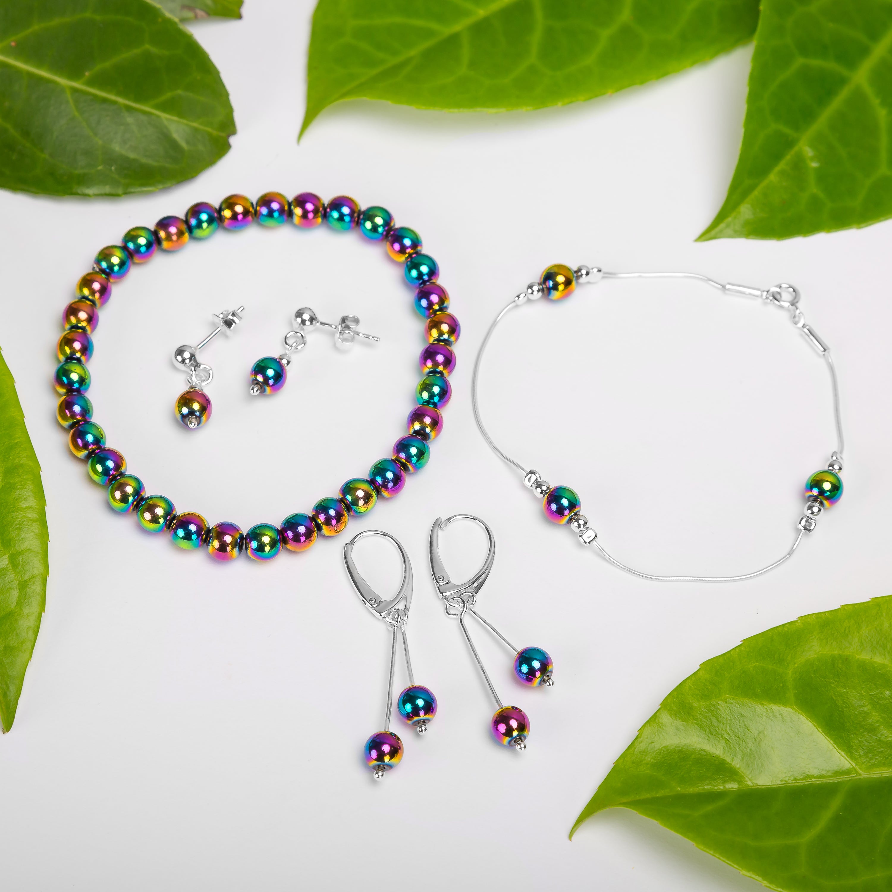 Effortlessly stylish Silver and Rainbow Titanium Bead Bracelet.