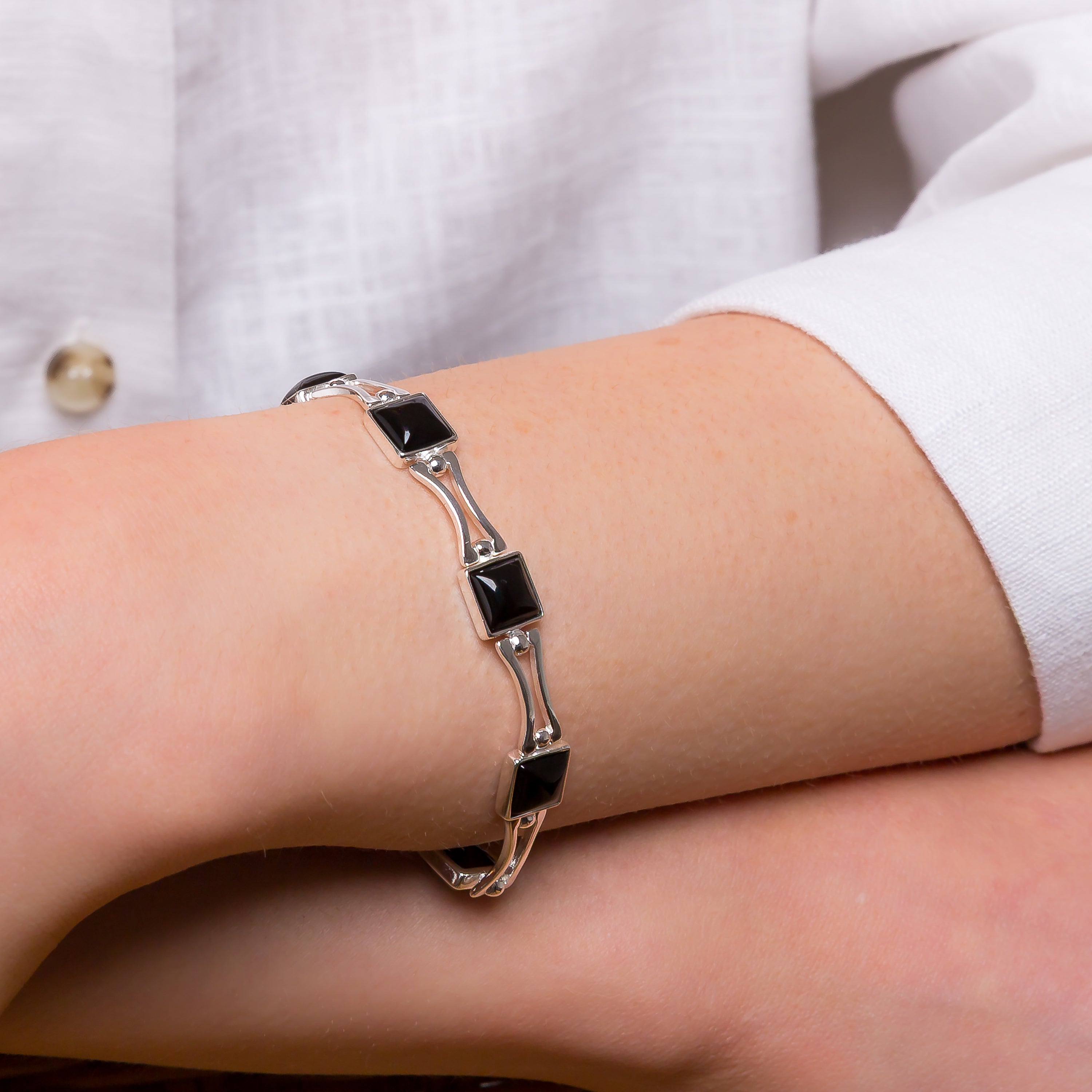 Square Link Bracelet in Silver and Black Onyx