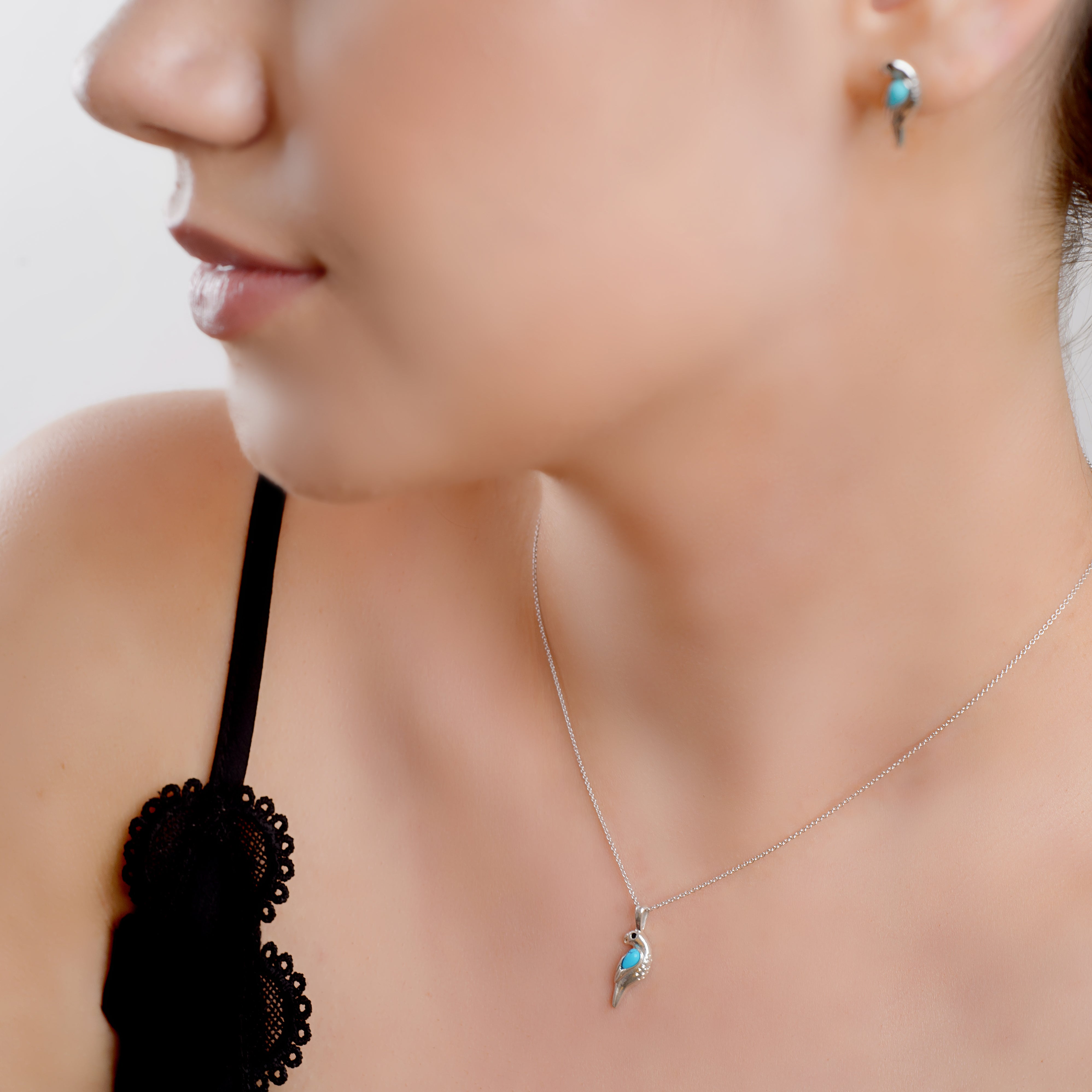 Miniature Parrot Necklace in Turquoise & Silver