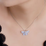 Common Blue Butterfly Necklace in Silver and Blue Lace Agate