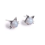 Cute Cat Face Stud Earrings in Silver and Blue Lace Agate