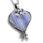 Heart Shape Baltic Blue Lace Agate & Silver Necklace - Natural Designer Gemstone