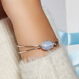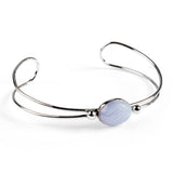 Simply elegant Silver and Blue Lace Agate Oval Bangle.