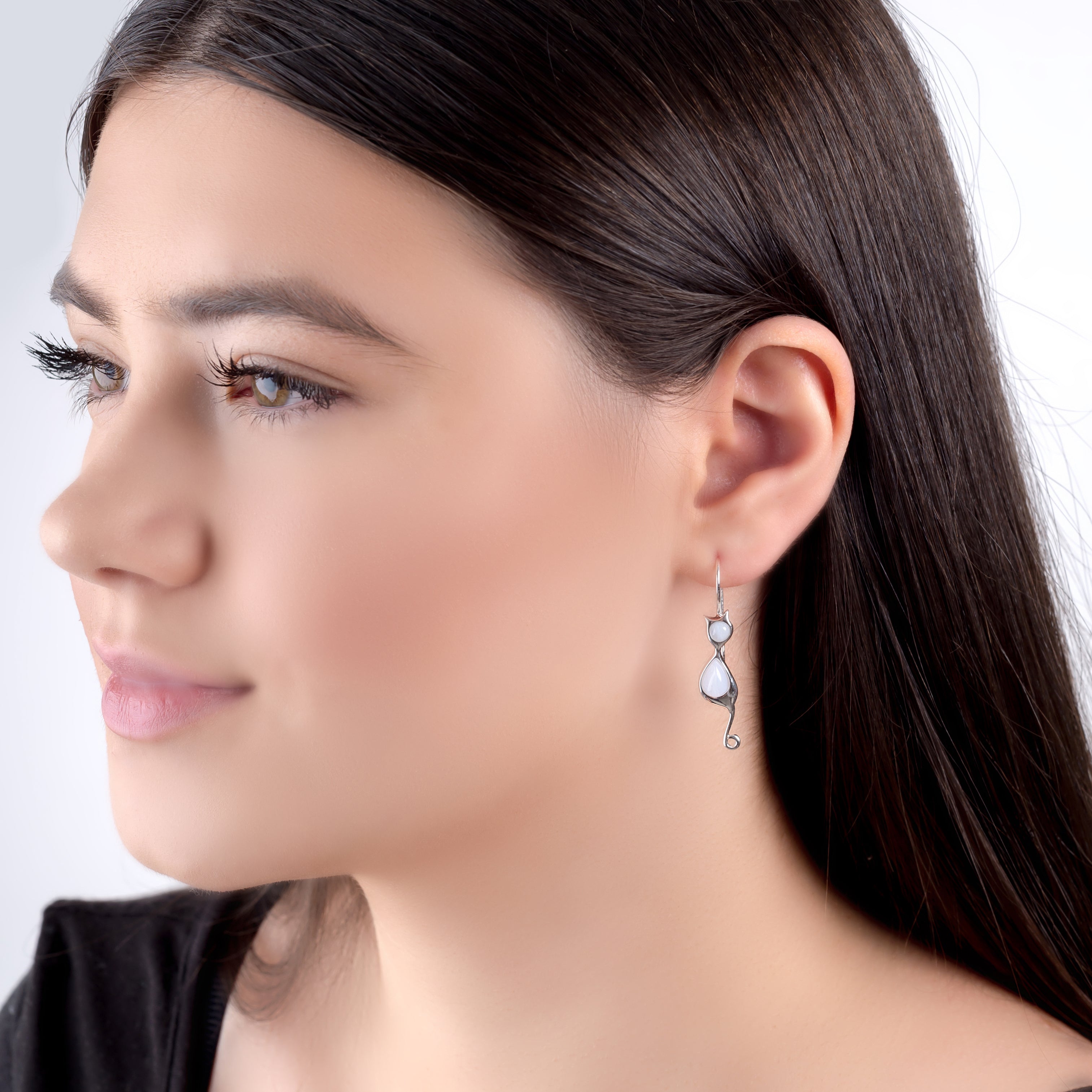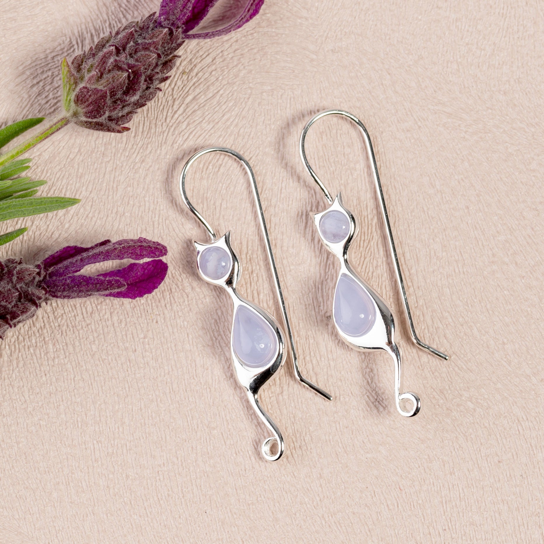 Russian Blue Cat Drop Earrings in Silver and Blue Lace Agate