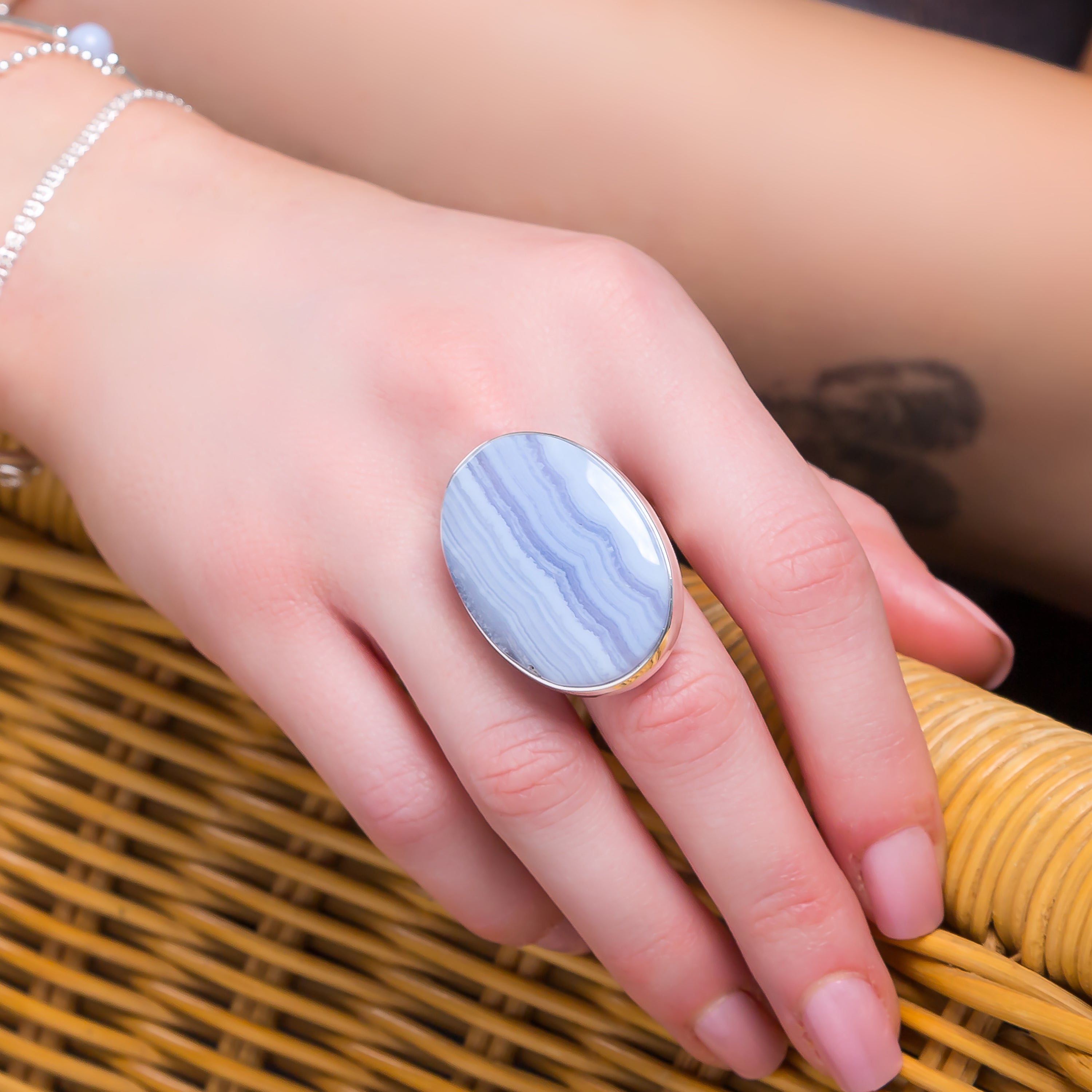 Exquisite Blue Lace Agate Ring - Natural Designer Gemstone