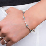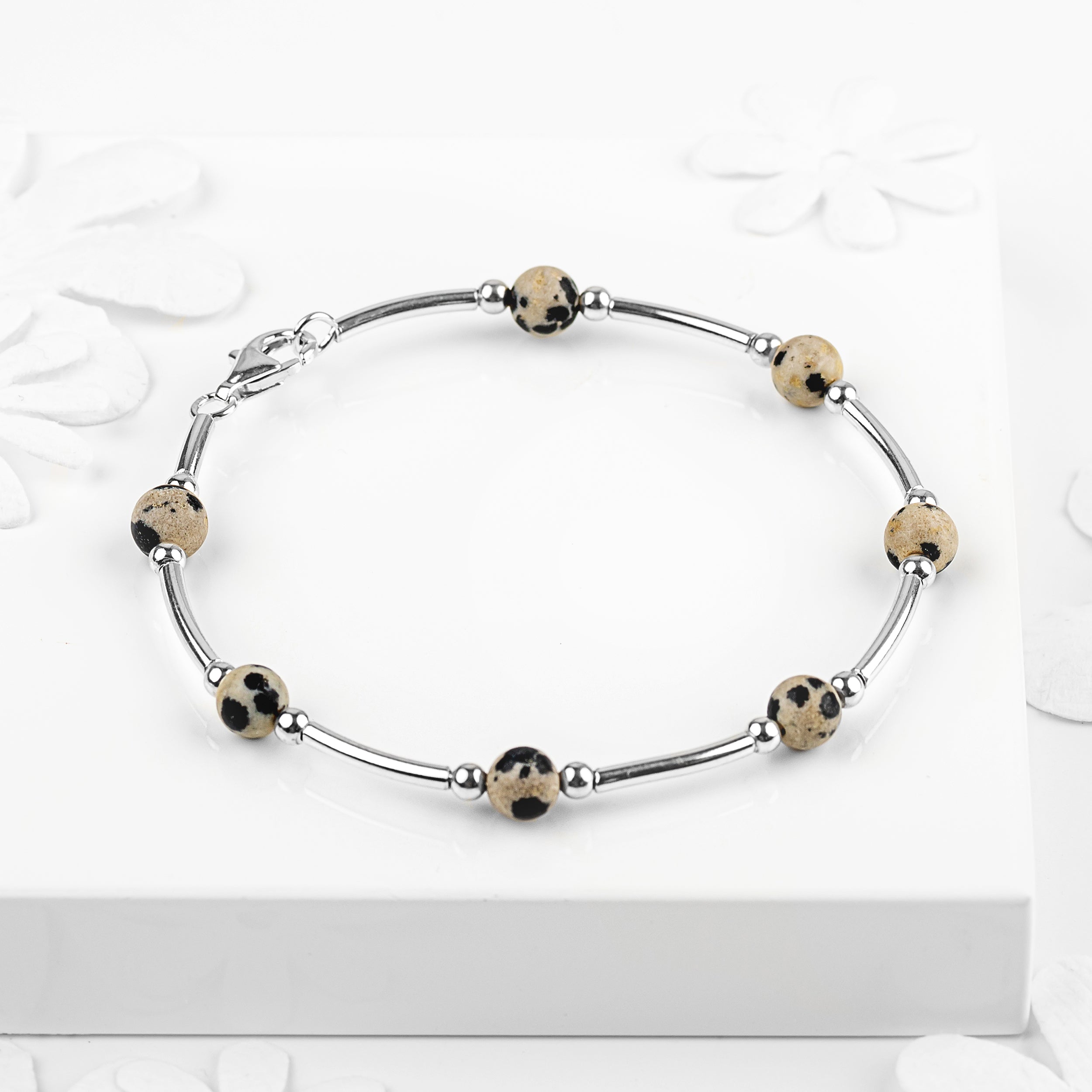 Create effortless everyday style with our Silver & Dalmatian Jasper Bead Tube Bangle.