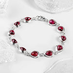 Add sophisticated style to your look with our Silver & Garnet Teardrop Link Bracelet.