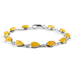 Handcrafted in solid 925 silver, this bracelet is adorned with 11 genuine Baltic yellow Amber gemstones which have been carefully cut and polished into a teardrop shape. Each stone is set and linked together in silver.