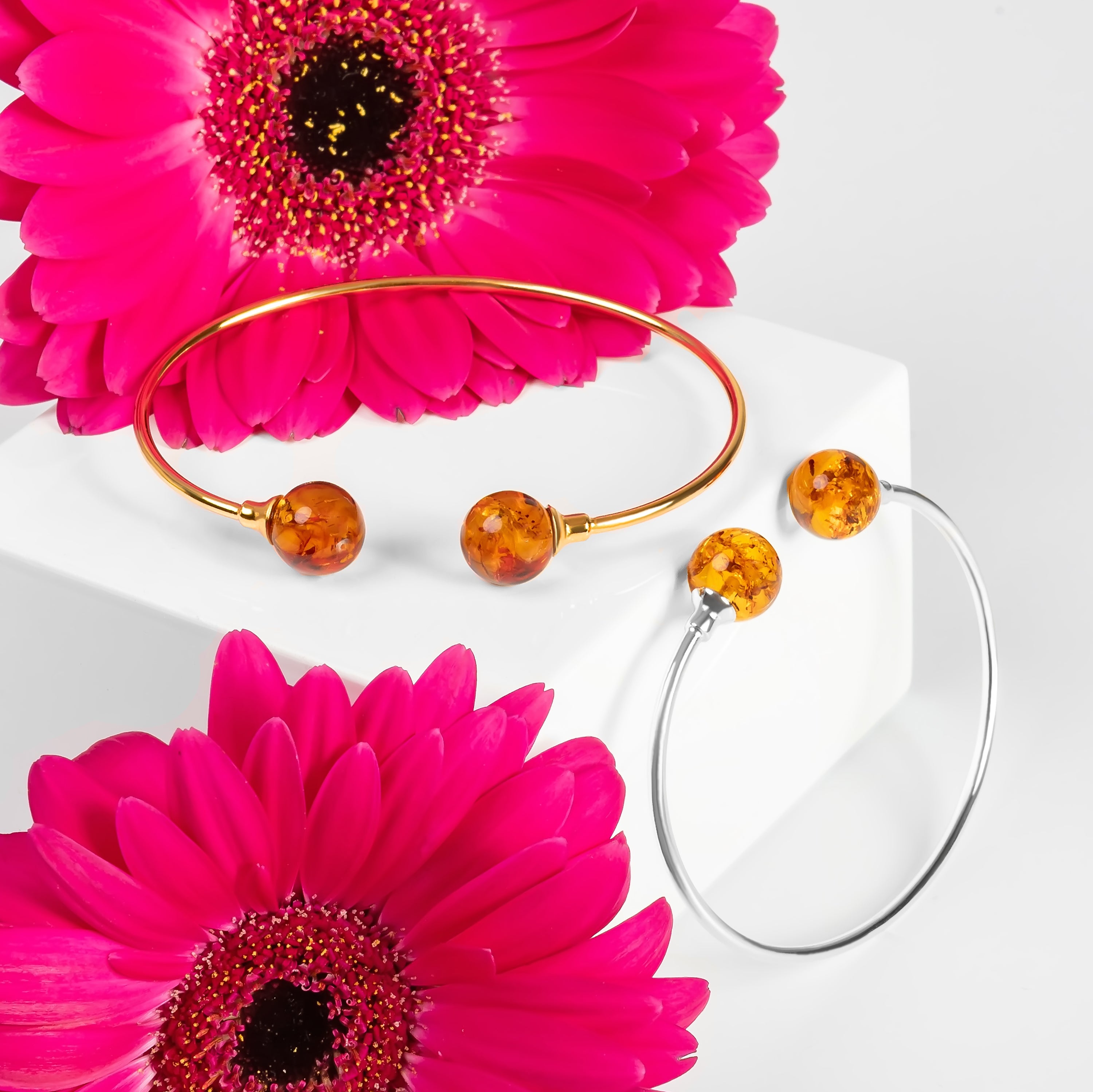 Simple and sophisticated Silver and Amber Double Ball Cuff Bangle will complete your jewellery collection.
