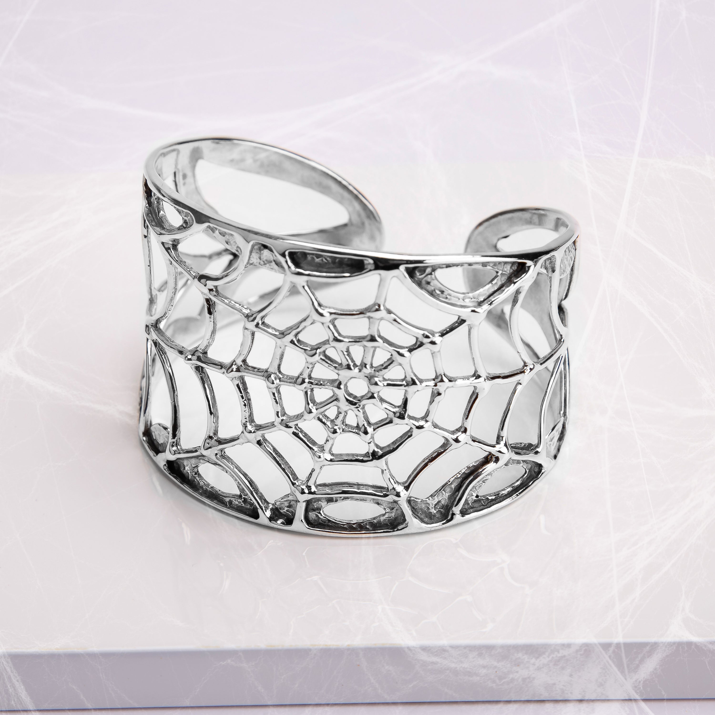 Make a statement with our one of a kind Solid Silver Spider Web Bangle.