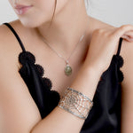 Handcrafted in 925 Sterling Silver, this unique cuff style mimics a perfectly formed spider's web. A wonderful accessory that will delight any one who loves unusual jewellery pieces.