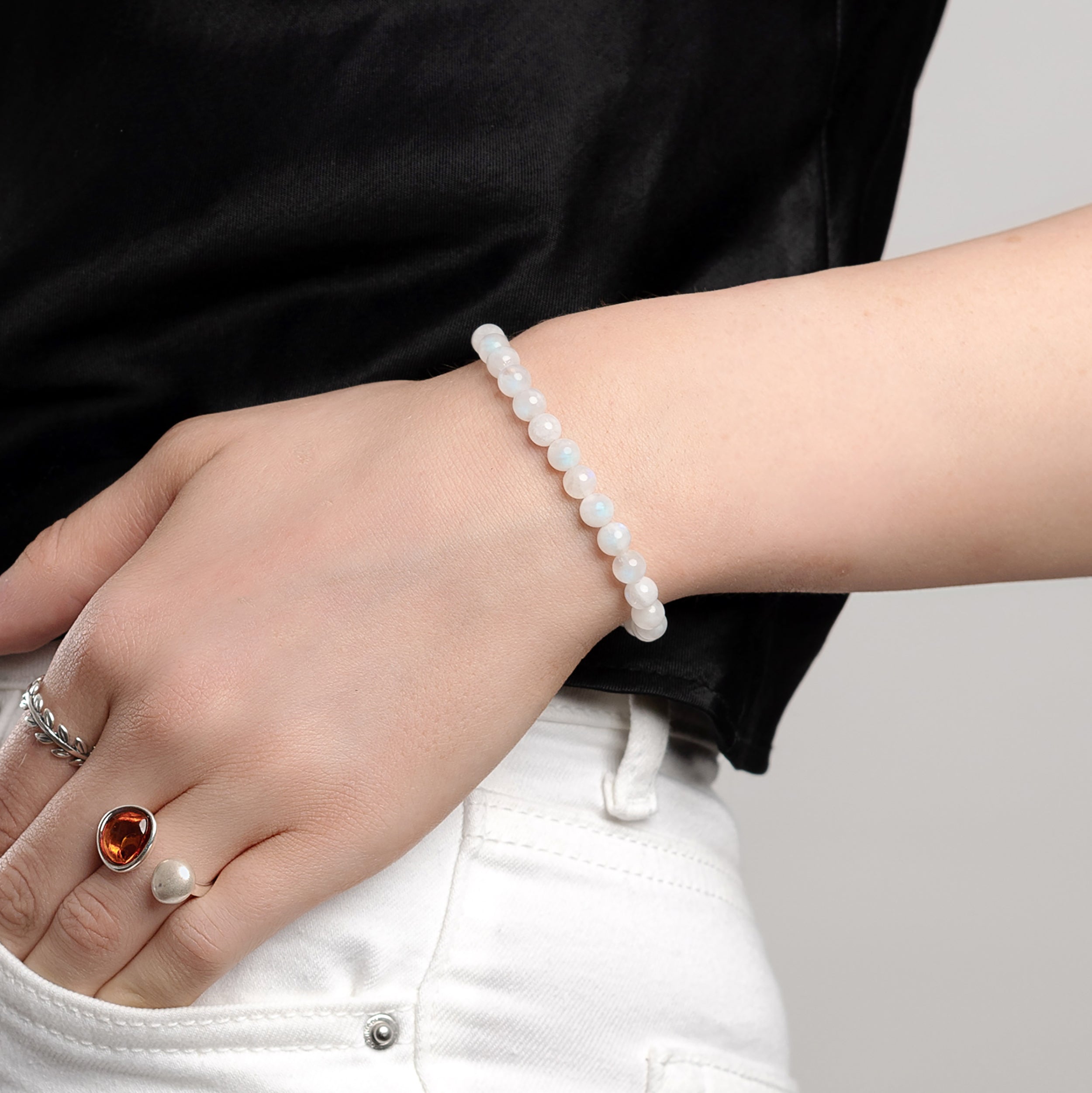 Made up of perfectly rounded natural shimmering Moonstone gemstone beads on a strong nylon string, this bracelet can be worn solo or layer up with your favourite accessories.