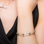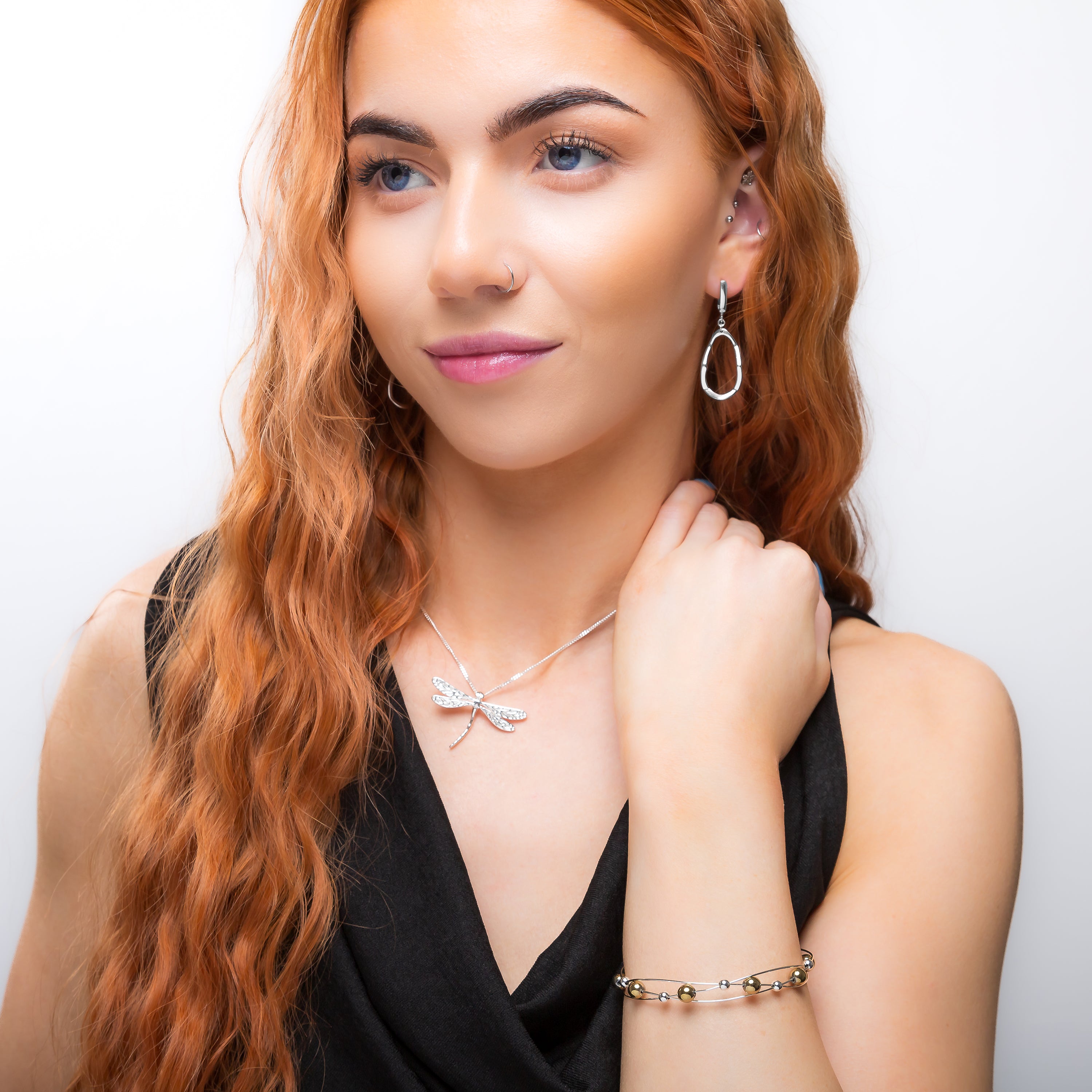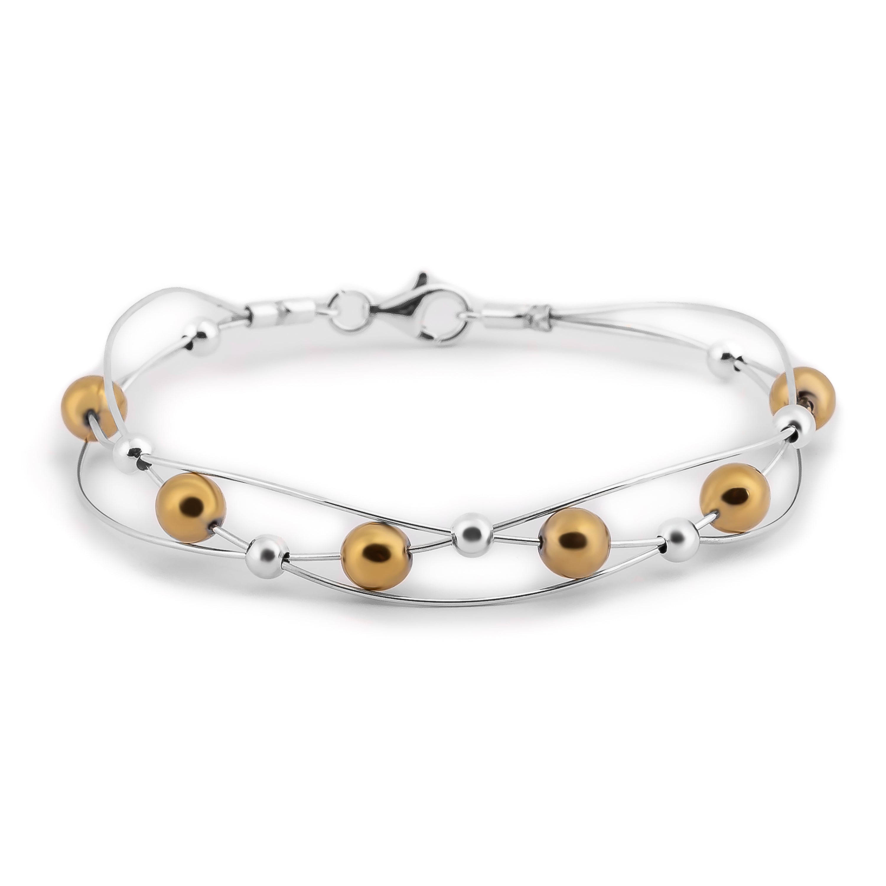 Carefully handcrafted in 925 silver and adorned with shining Gold Hematite beads spaced evenly across entwined silver wire. Finished with miniature silver beads between each of the stones. Complete with a bolt ring clasp for secure and easy fastening.