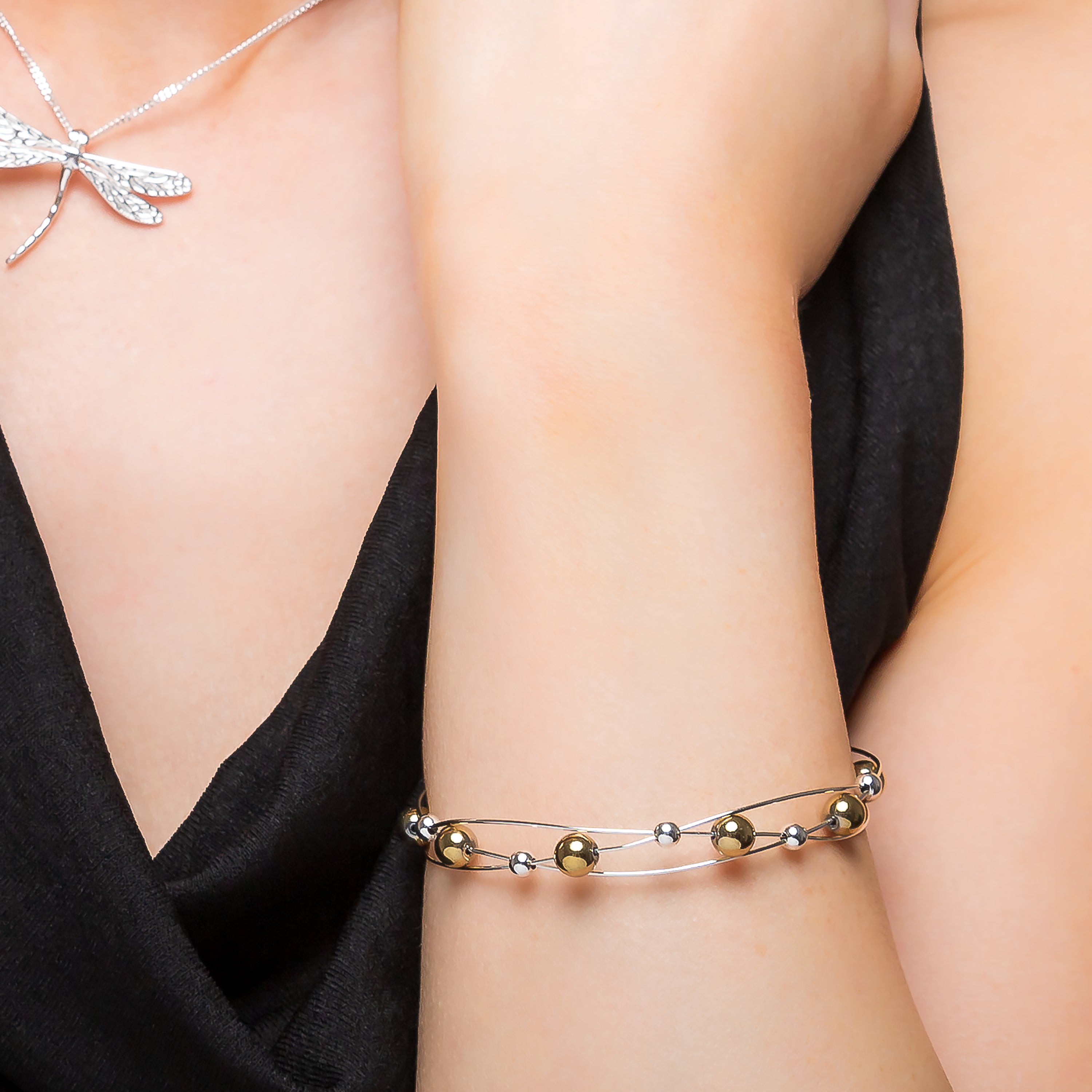 Our elegant Silver and Gold Hematite Weave Bangle makes the perfect everyday jewellery statement.