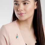 Lovingly crafted in 925 silver and adorned with a teardrop shaped Turquoise stone which has been carefully set into the intricate silver work feather. Complete with a solid silver pin and safety clasp, it is versatile and stylish.