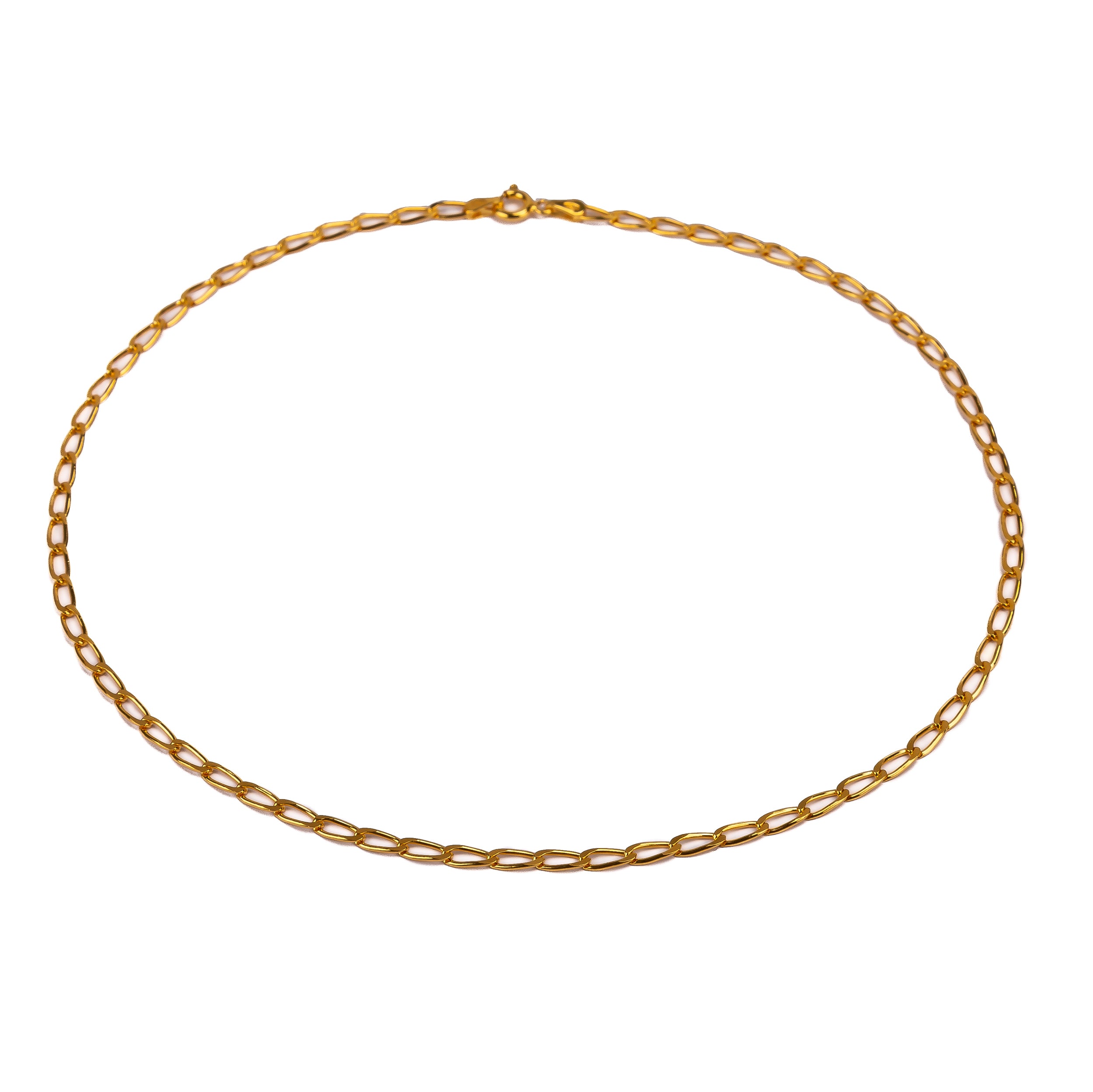 Made from Solid Sterling Silver with 14ct Gold Plating, the necklace is made by combining paperclip style links together to create a unique looking chain Strong but delicate in appearance, it comes complete with a bolt ring clasp.