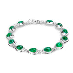 Handcrafted in solid 925 silver with 24ct Gold plating, this bracelet is adorned with 11 rich green Green Onyx gemstones which have been carefully cut and polished into a teardrop shape. Each stone is set and linked together in a 24ct Gold plated mount.