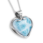 Discover the magic of the Caribbean with this enchanting AAAA quality Larimar heart necklace, featuring a rare sky-blue gemstone known as gem-quality pectolite.