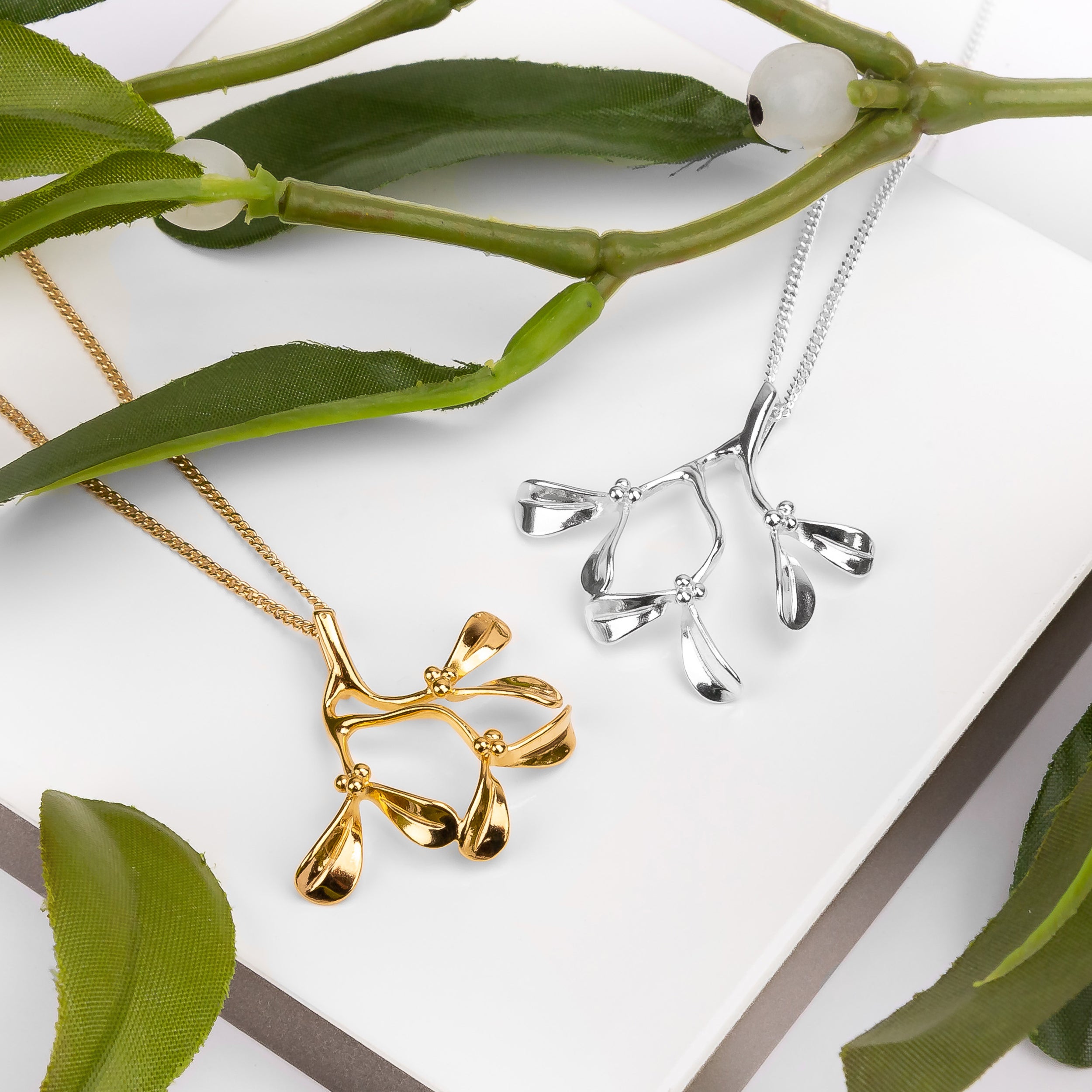 For the one you want to 'kiss under the Mistletoe' Our Silver with 24ct Gold Mistletoe Necklace makes the perfect festive gift.