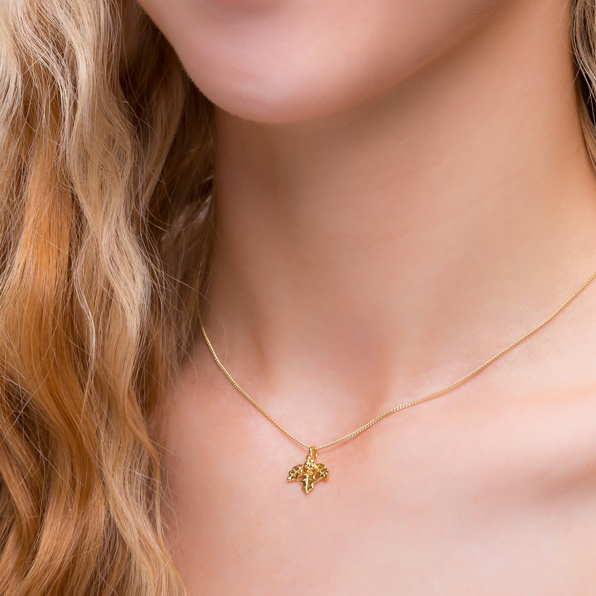 Miniature Holly Leaf Spig Necklace in Silver with 24ct Gold