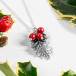 Add a festive feel to your accessories with our Silver Holly Leaf Necklace.