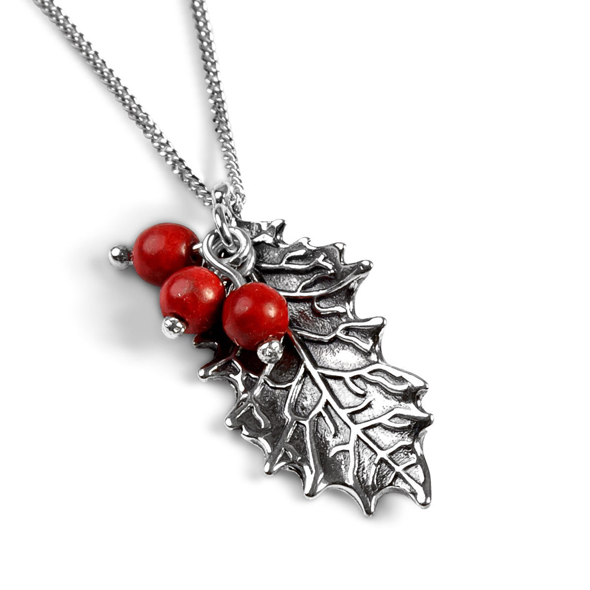Handcrafted in 925 Sterling Silver this striking pendant is instantly recognisable as the popular ever-green plant associated with Christmas time. With careful detailing on the leaf, spikey shape and 3 red coral stone berries to complete this gorgeous piece of jewellery.