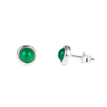 Small Round Stud Earrings in Silver and Green Onyx