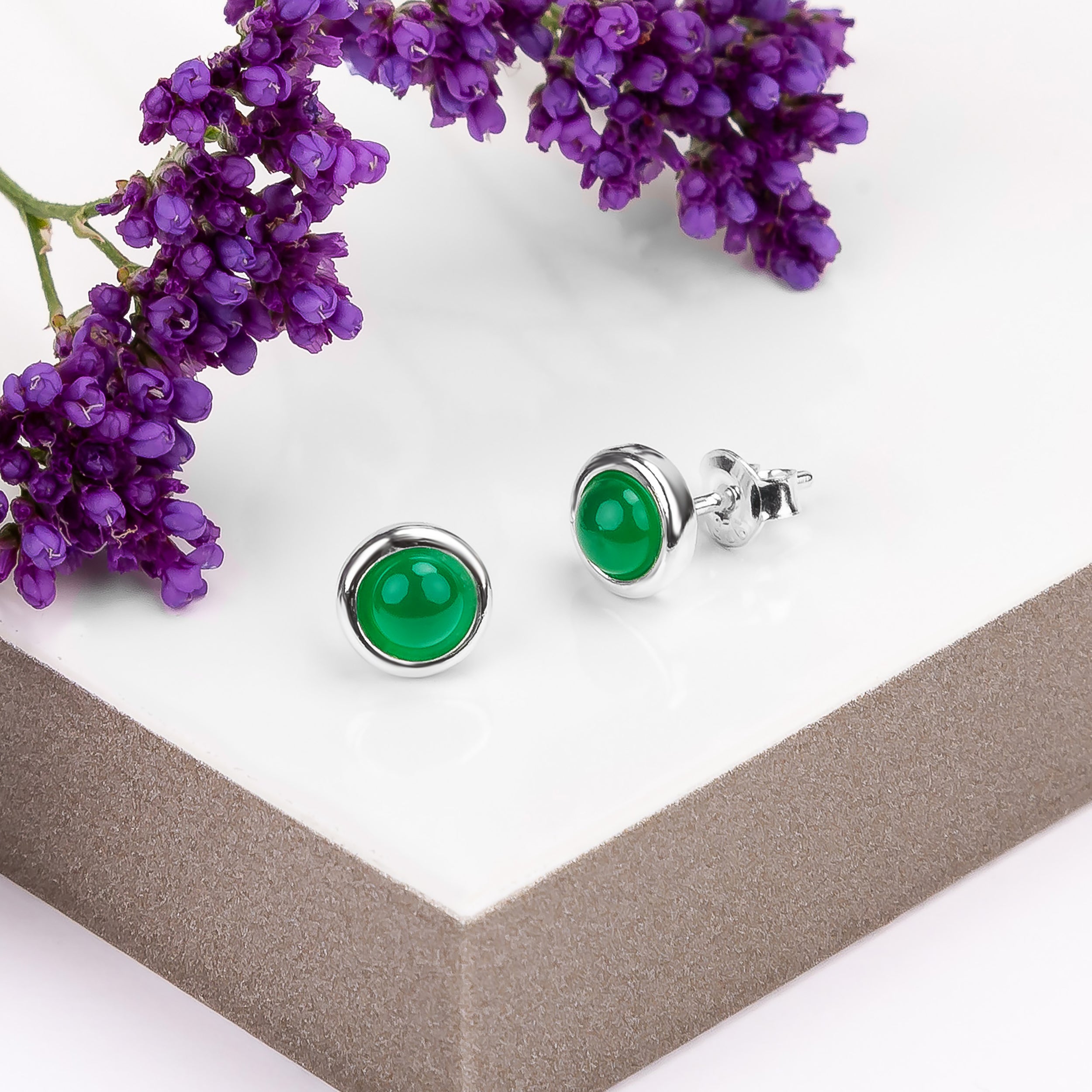 Silver and Green Onyx Small Round Stud Earrings are perfect for achieving casual everyday style.