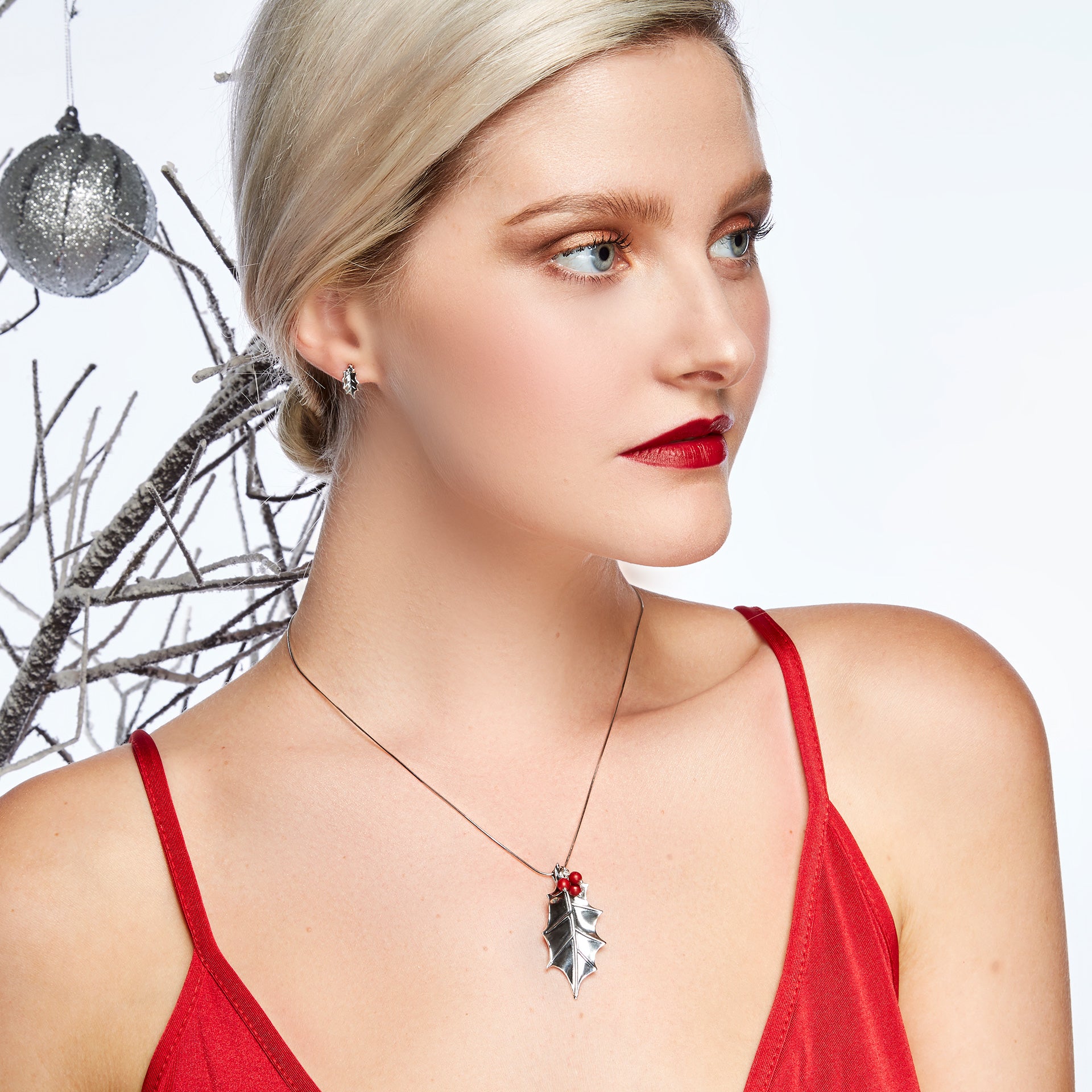 Handcrafted in 925 Sterling Silver this striking pendant is instantly recognisable as the popular ever-green plant associated with Christmas time. With careful detailing on the leaf, spikey shape and 3 red coral stone berries to complete this gorgeous piece of jewellery.