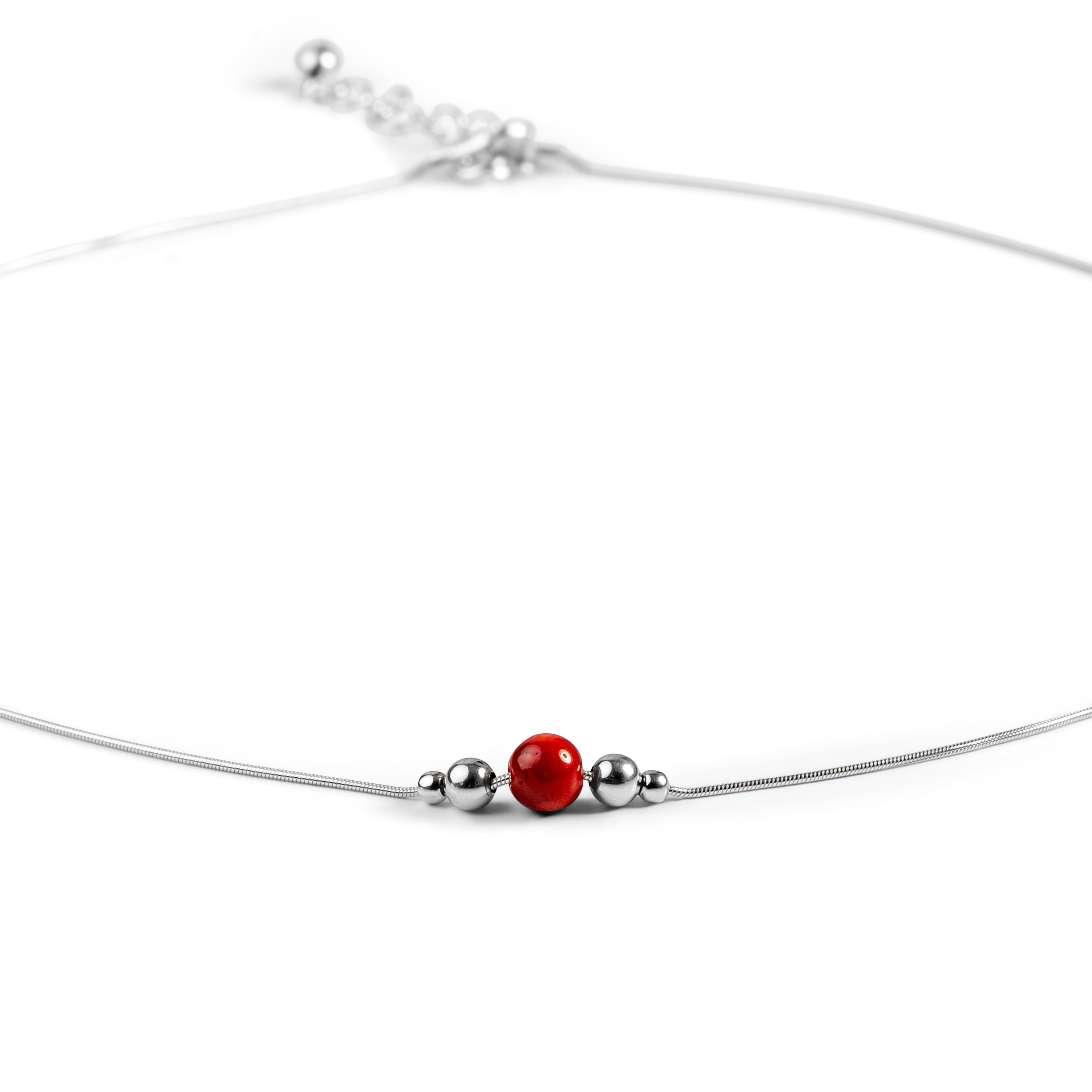 Sophisticated Silver & Coral Ball Necklace can be worn for any occasion.