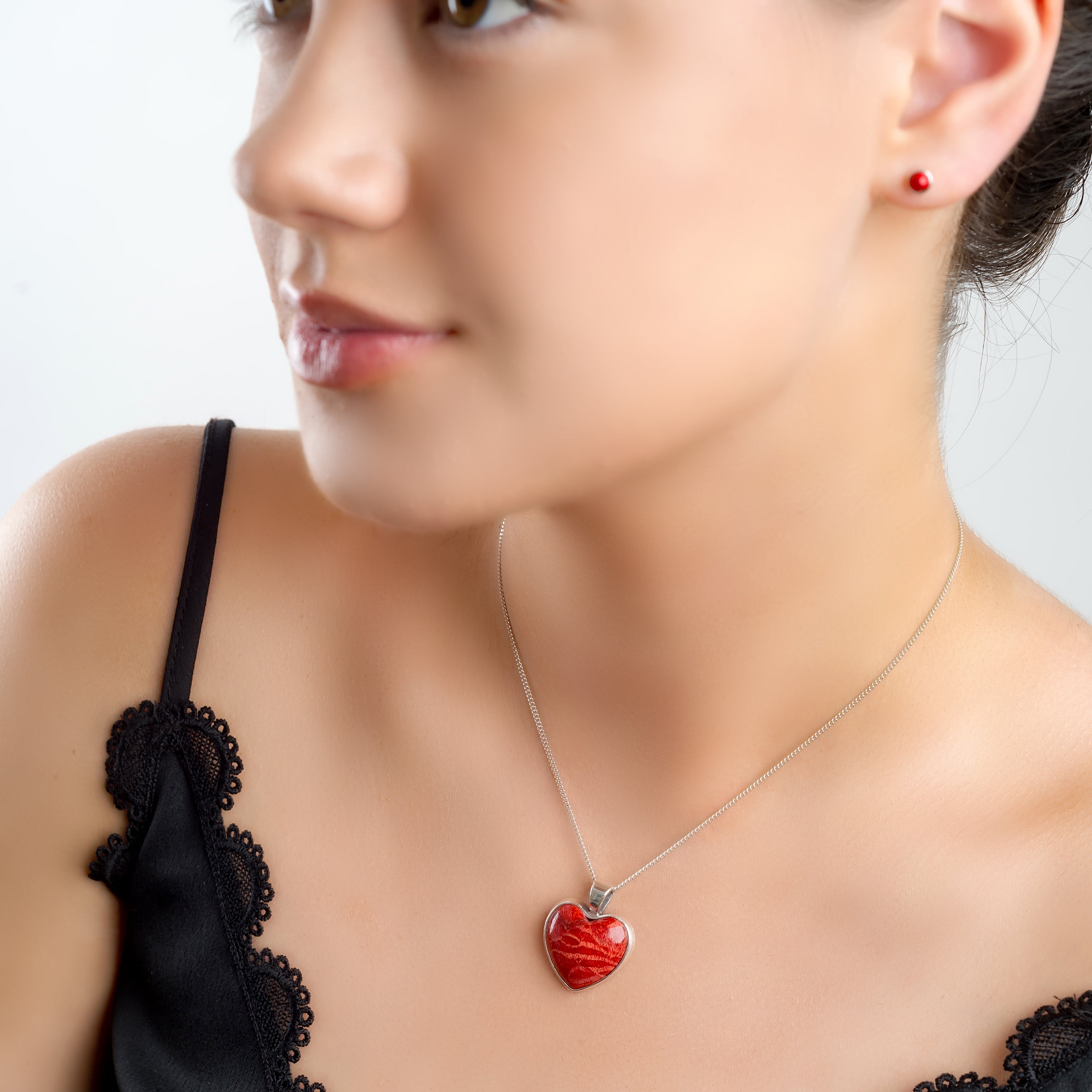Heart Shaped Red Horn Coral Necklace - Natural Designer Gemstone