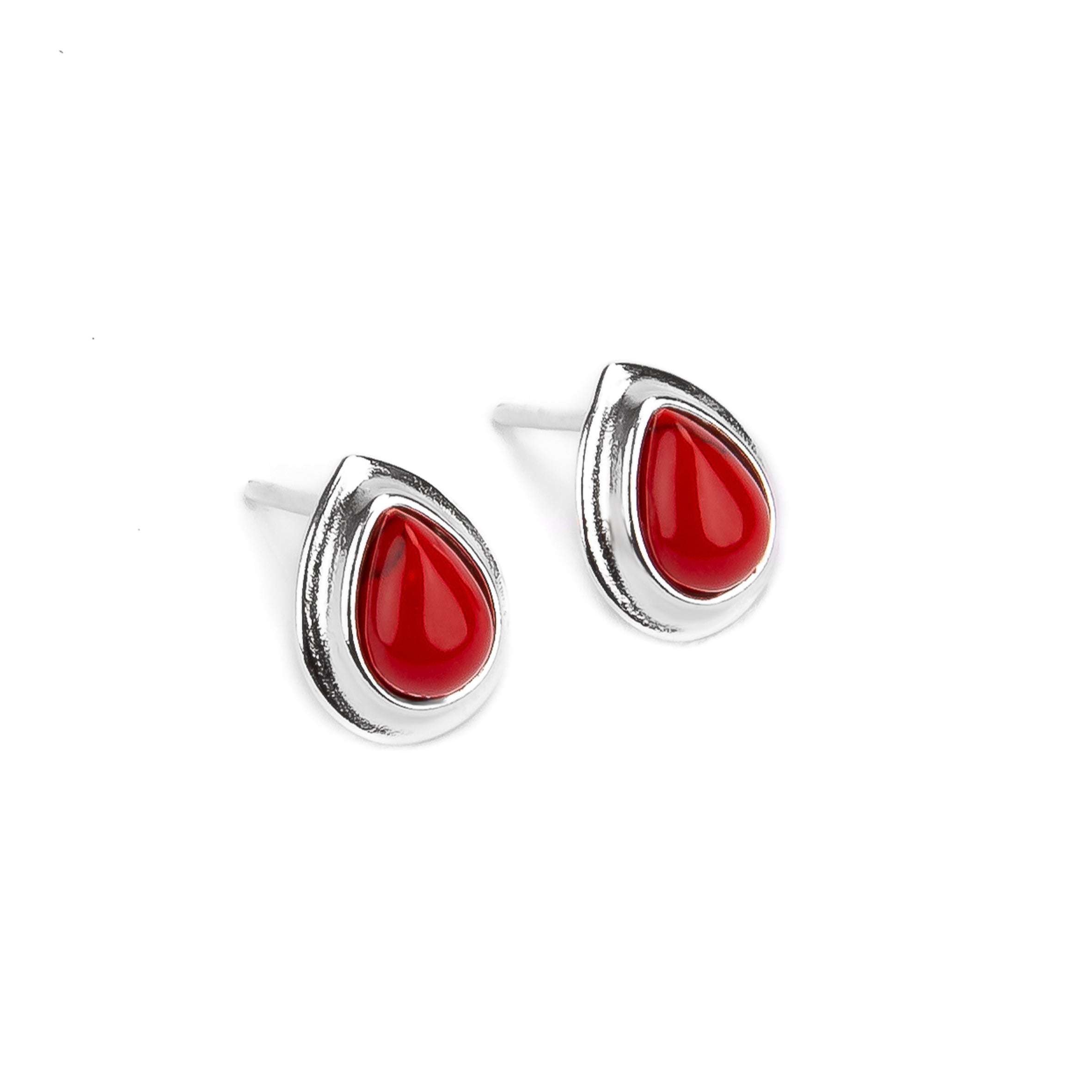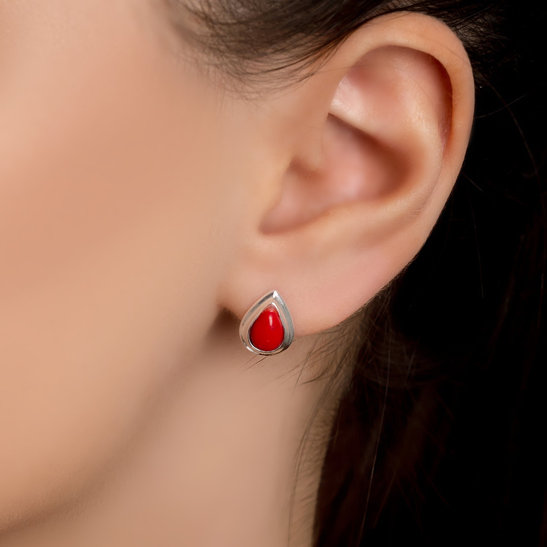 Crafted in solid 925 silver, each earring has a single teardrop shaped striking red coral stone. With a solid silver stem, secure butterfly back and delicate design, these earrings are perfect of all day wearing.