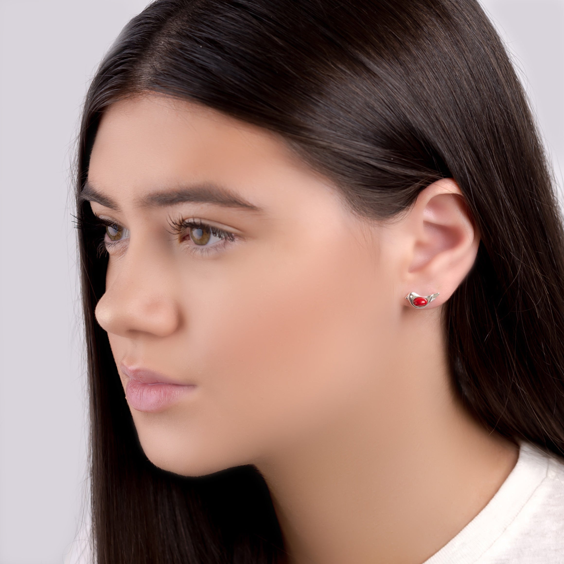 Gorgeous Silver and Coral Tiny Bird Stud Earrings.