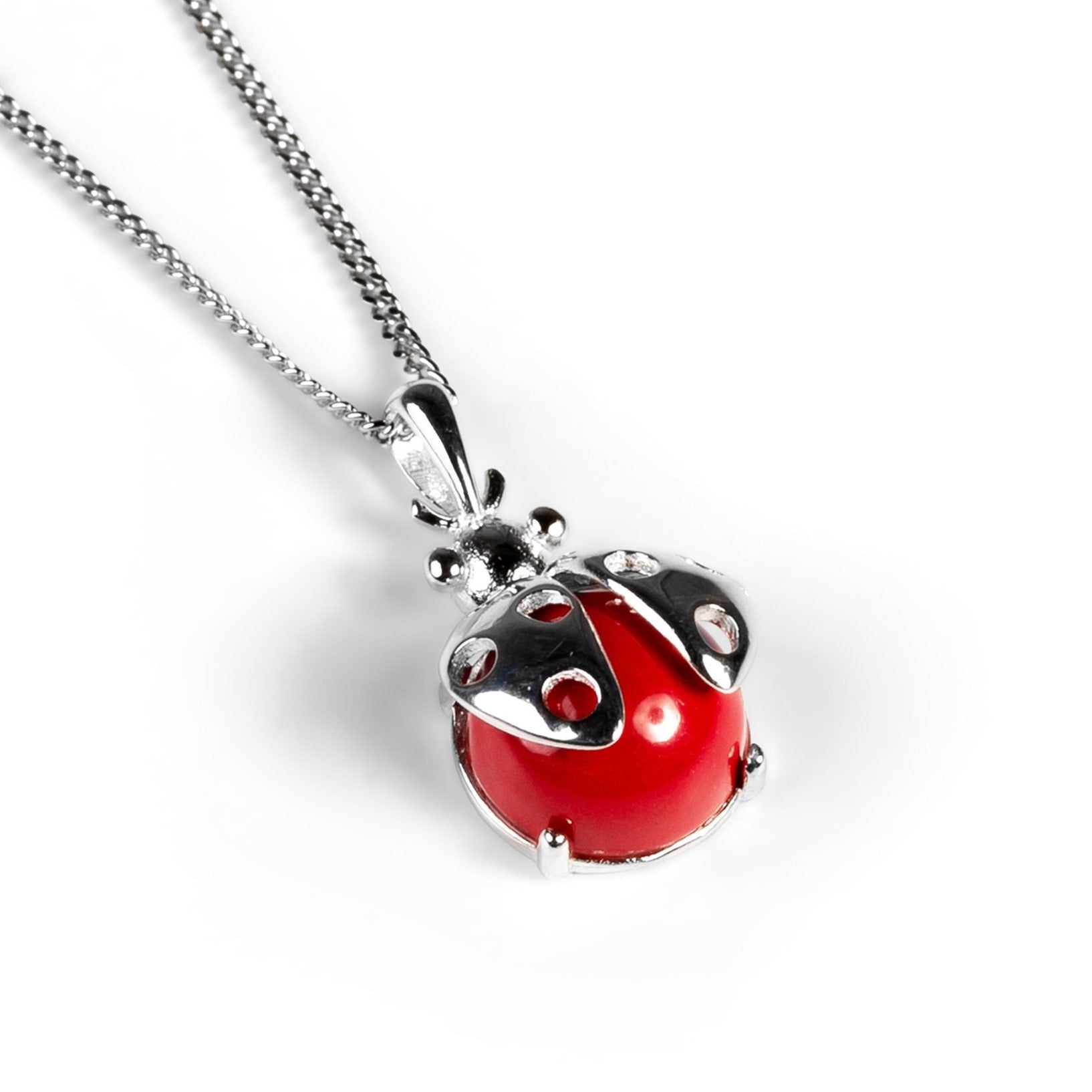 Large Woodpecker Bird Necklace in Silver, Coral and Amber