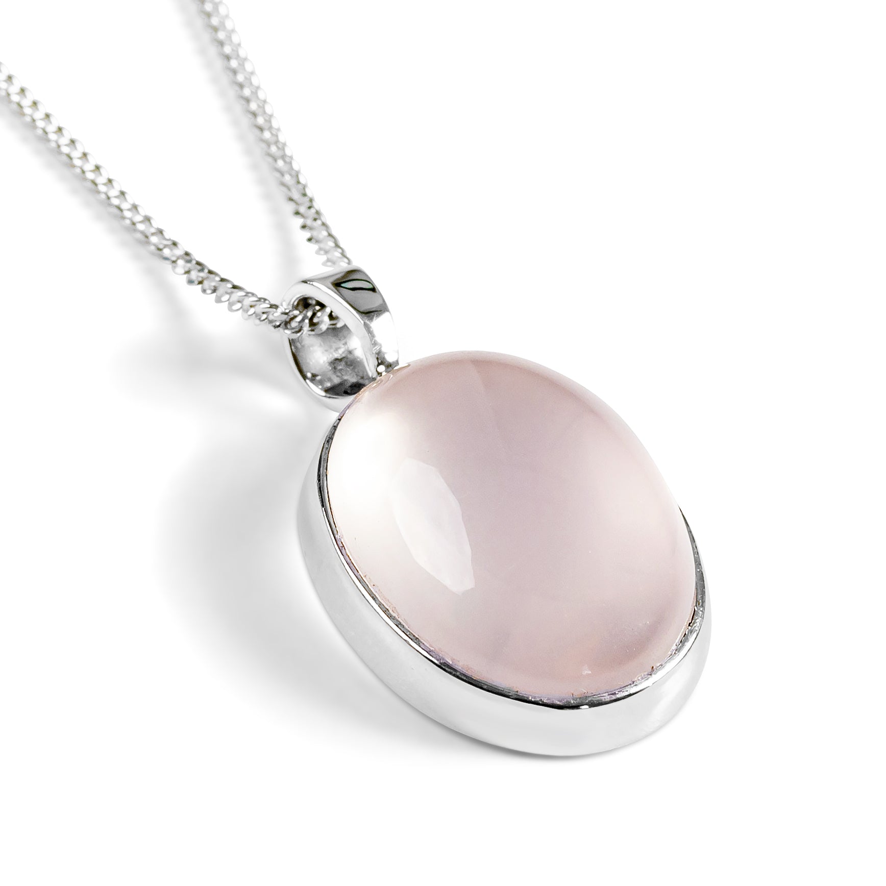 Pure Oval Rose Quartz Necklace - Natural Designer Gemstone
