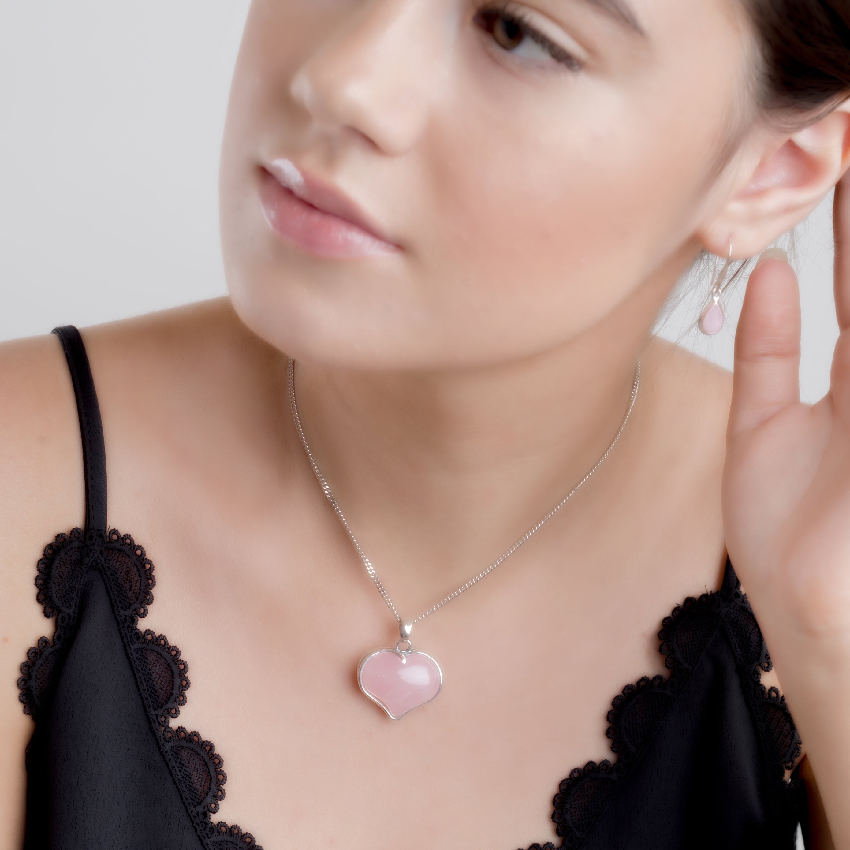 Romantic Love Heart Necklace in Silver & Rose Quartz